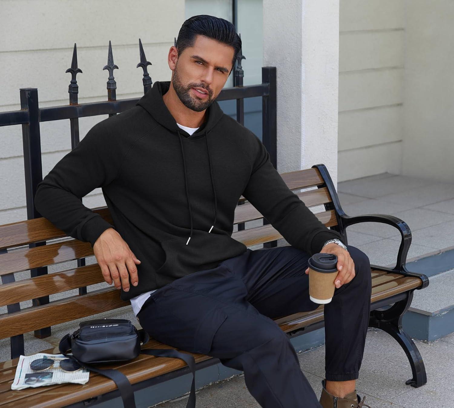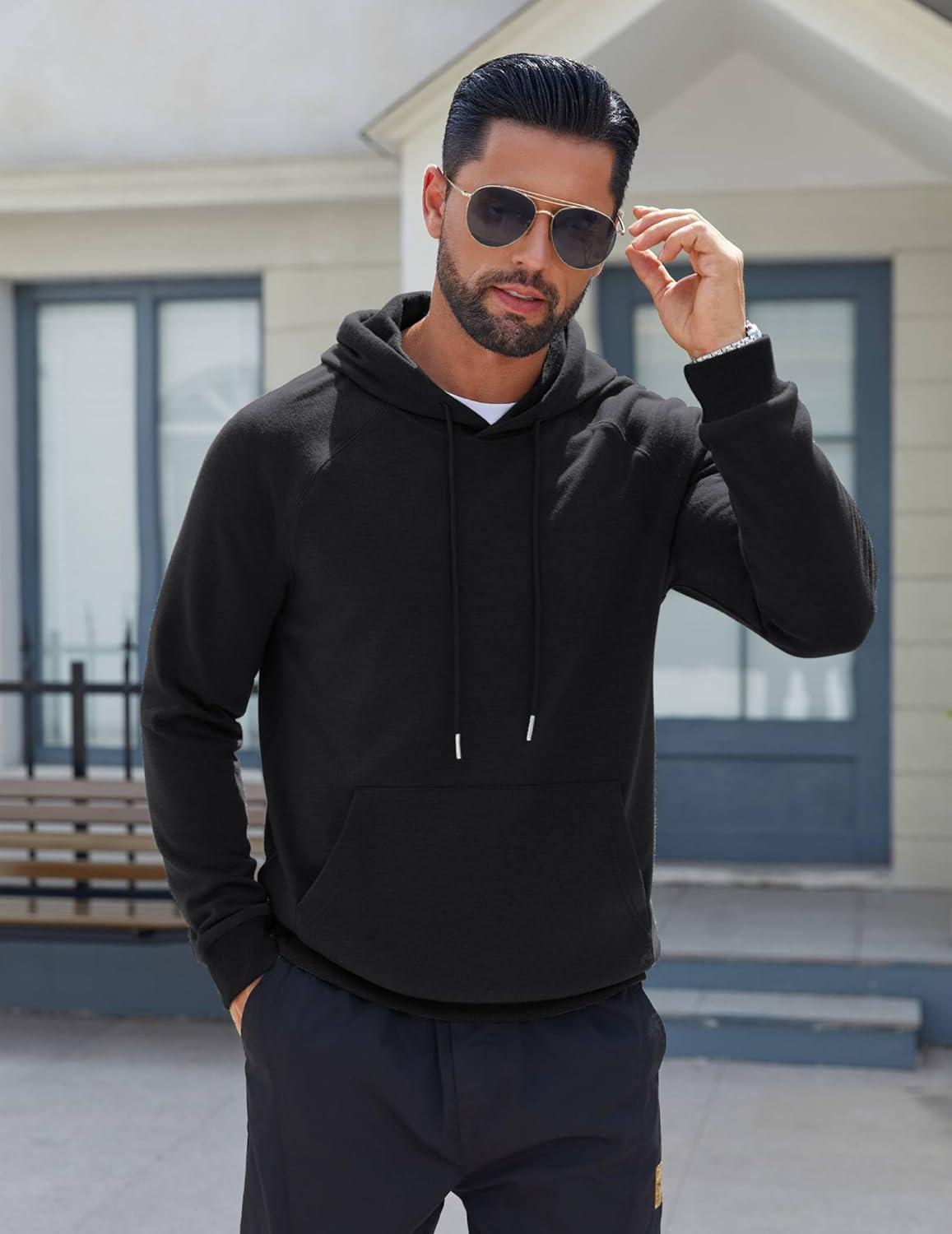 COOFANDY Men’s Fleece Hoodie Long Sleeve Hooded Sweatshirt Casual Basic Essential Drawstring Pullover Hoodie With Pocket(Black)