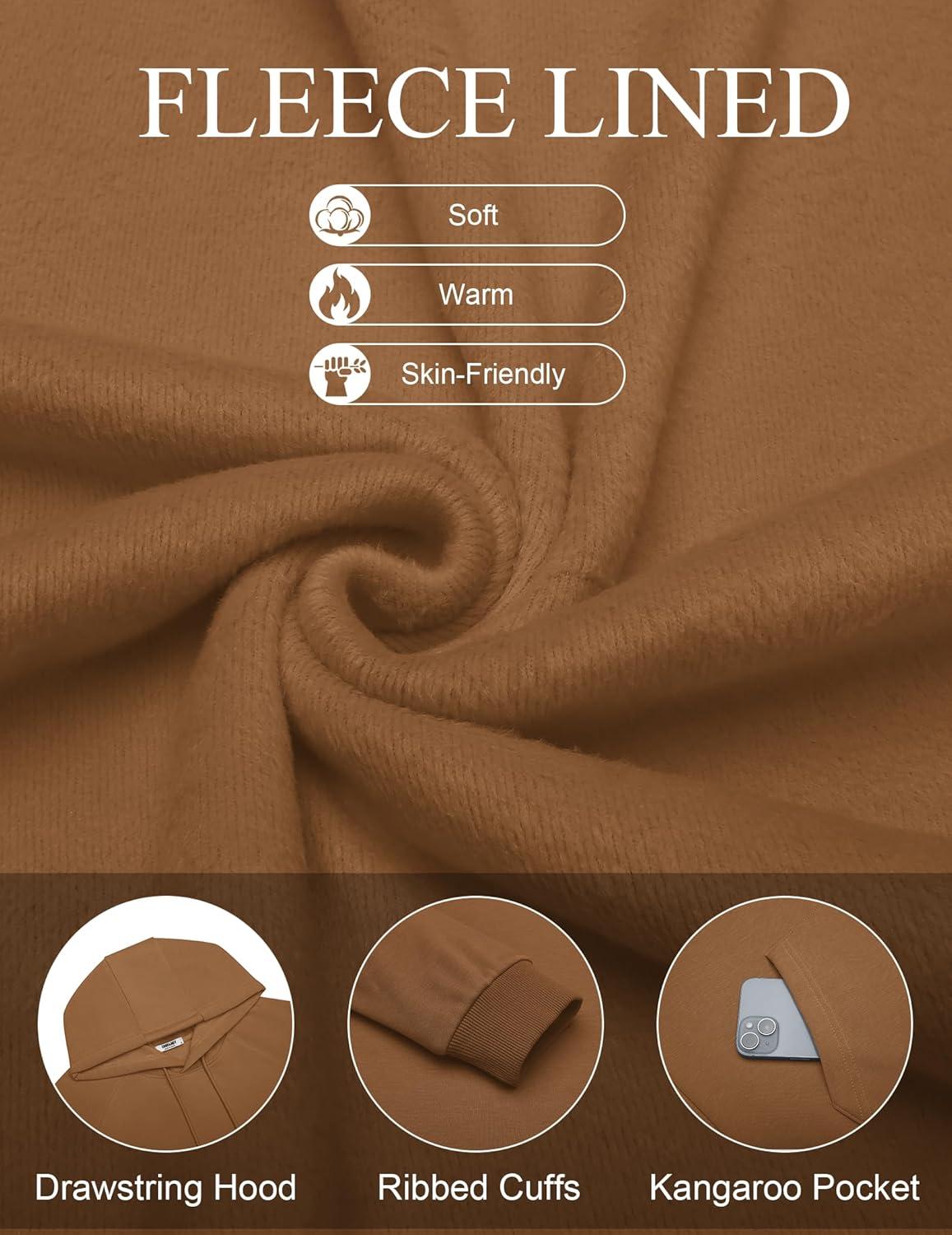 COOFANDY Men’s Fleece Hoodie Long Sleeve Hooded Sweatshirt Casual Basic Essential Drawstring Pullover Hoodie With Pocket(Light Brown)