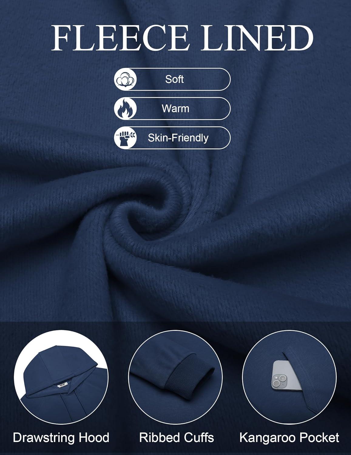 COOFANDY Men’s Fleece Hoodie Long Sleeve Hooded Sweatshirt Casual Basic Essential Drawstring Pullover Hoodie With Pocket(Navy)
