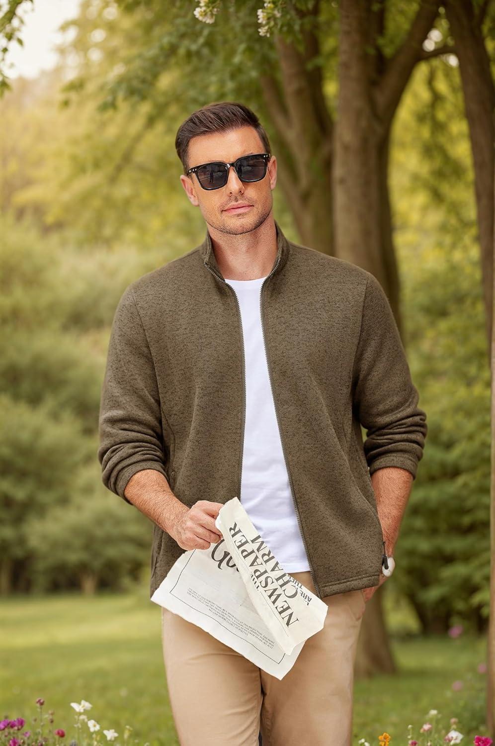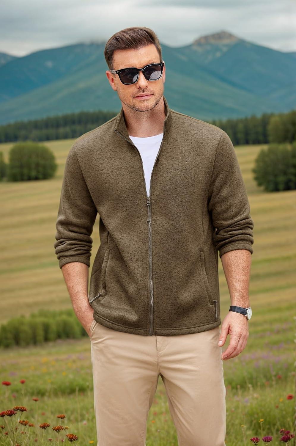 COOFANDY Mens Fleece Jacket Zip Up Lightweight Sweater Jackets Casual Warm with Pockets for Home Office Hiking(Brown)