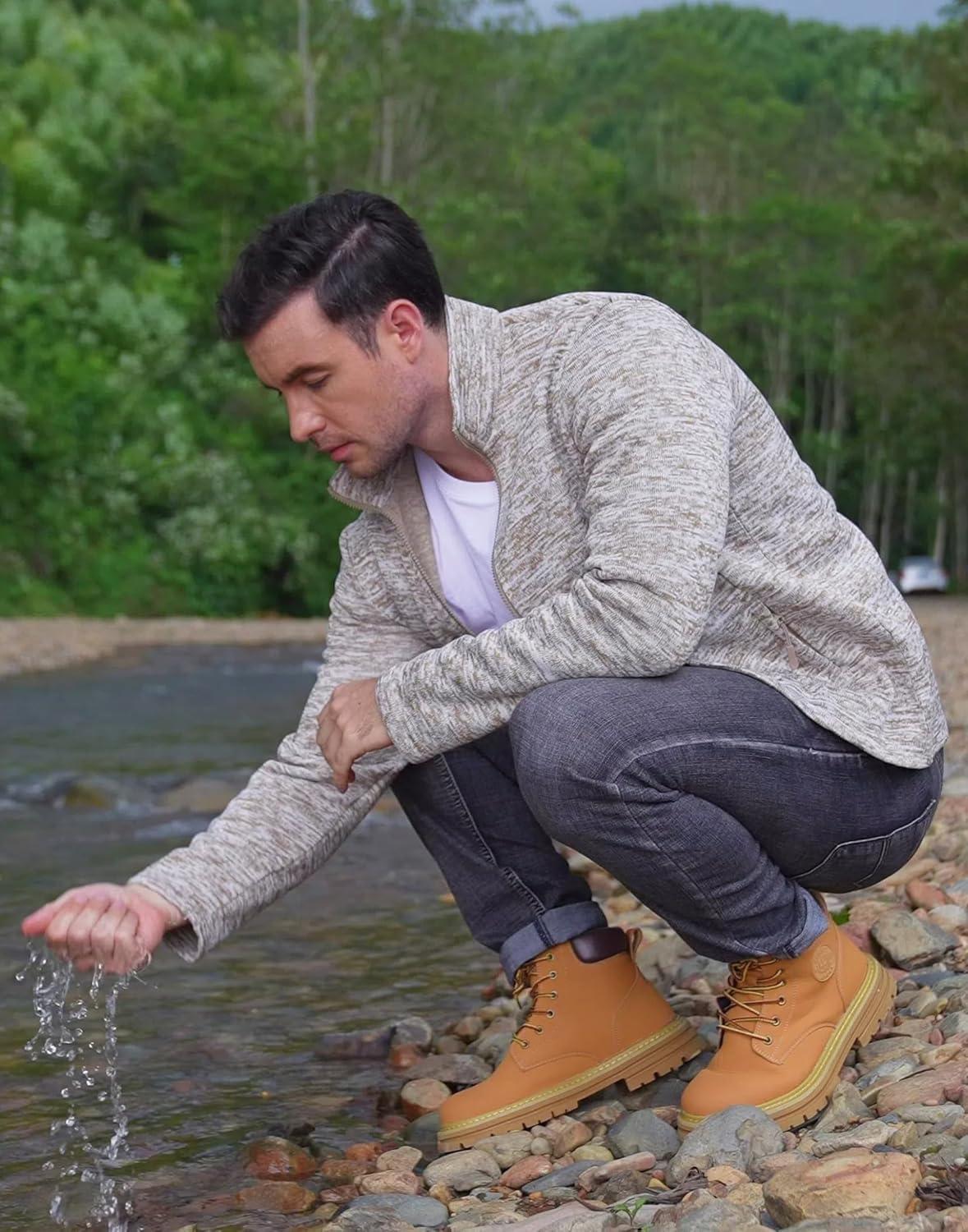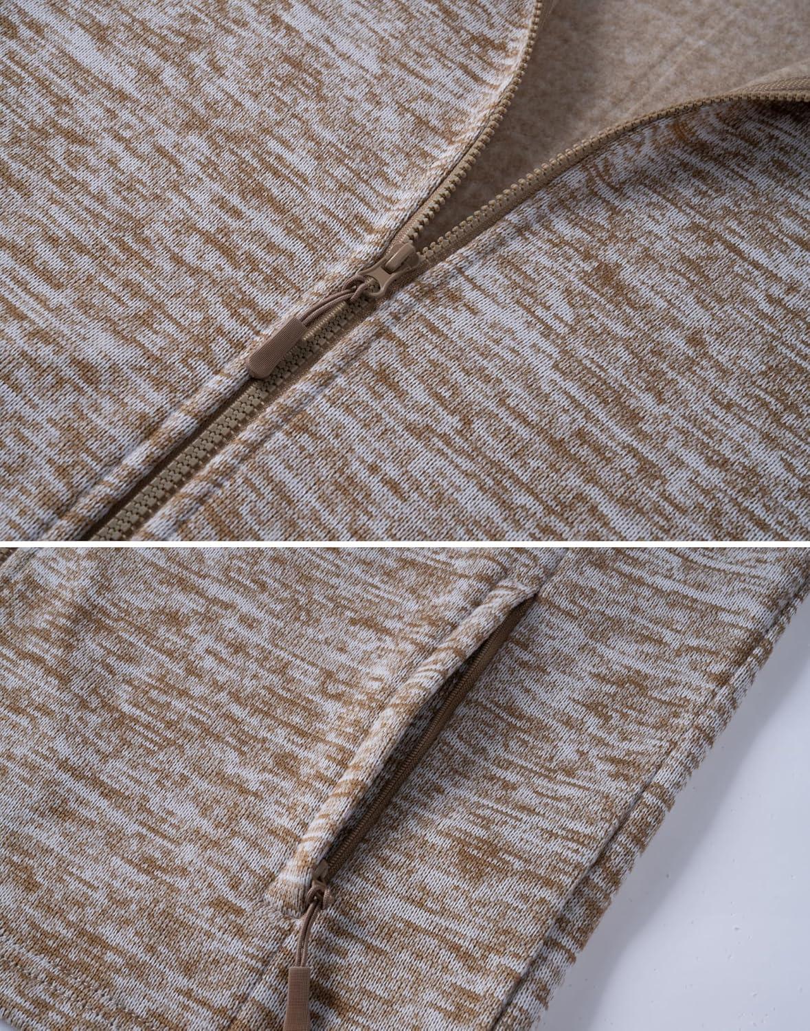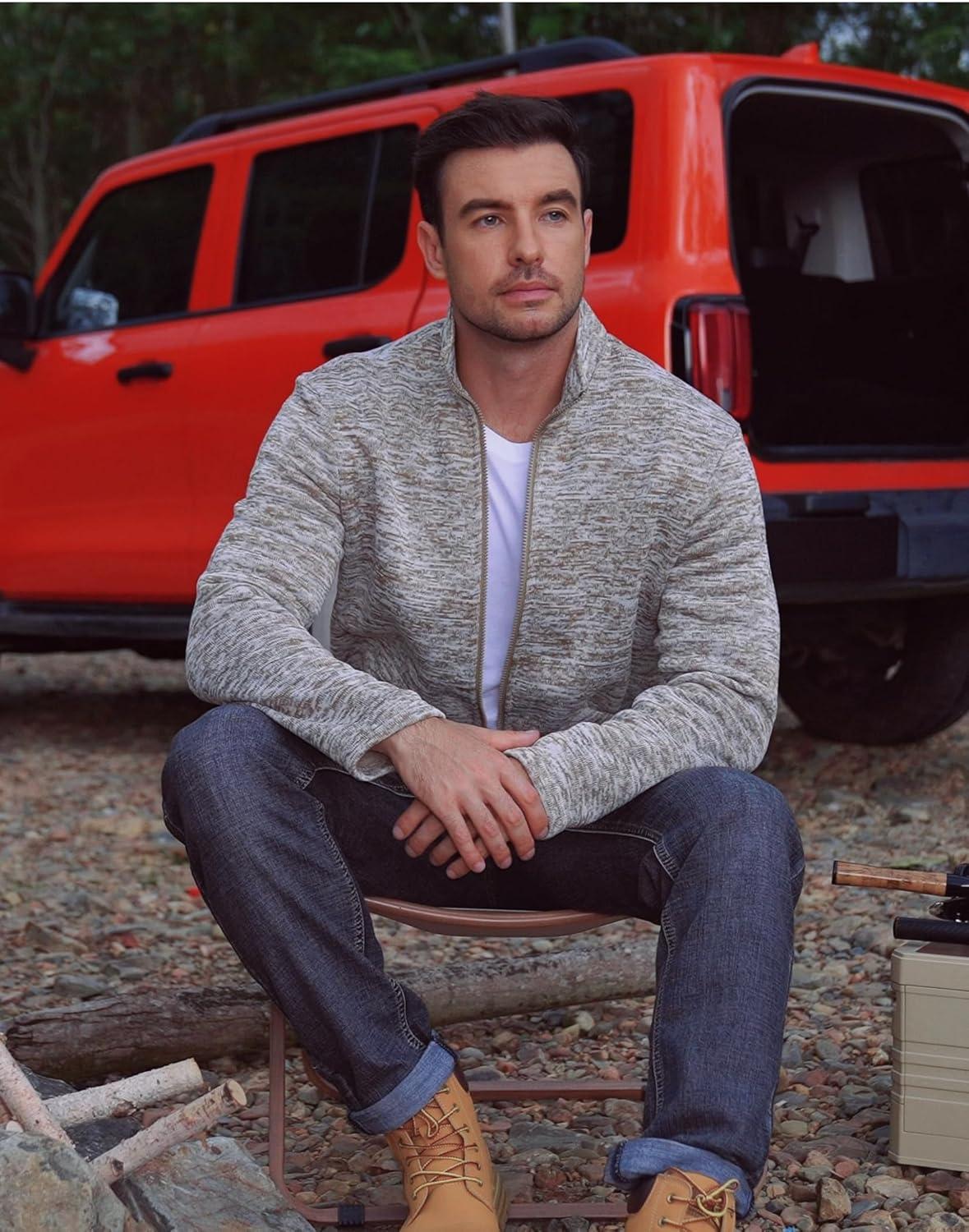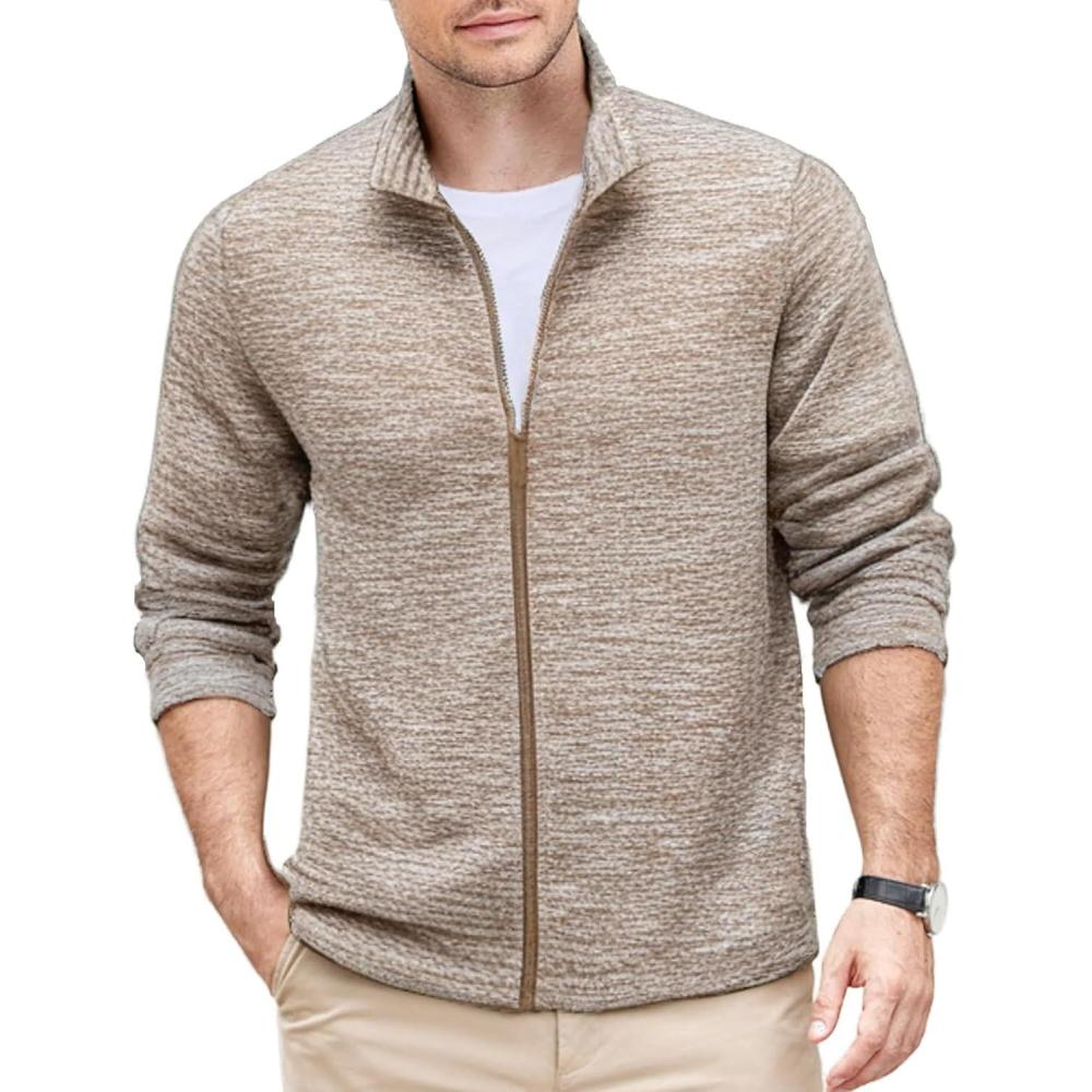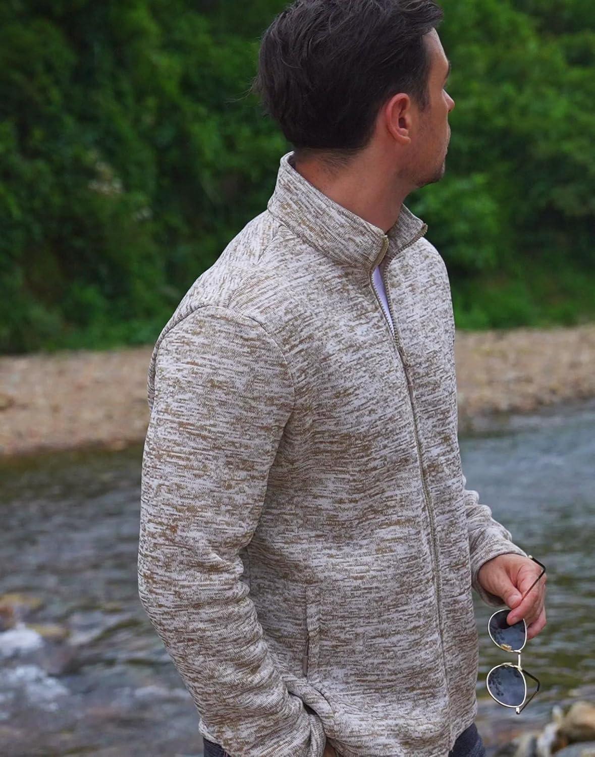 Stay warm and comfortable in this men’s fleece jacket made from 100% polyester. The outer surface features a stylish knitted texture, while the thin fleece lining is lightweight, soft, and cozy—perfect for chilly days (not waterproof). Designed with a full zip, stand-up collar, and straight fit, it offers easy layering and a relaxed feel. Two zippered hand pockets and two roomy inner pockets keep essentials like your phone, keys, and wallet secure. Ideal for fall, winter, and cool spring, whether for home, office, hiking, travel, or daily wear. Wear it over a T-shirt in mild weather or layer under a coat for extra warmth in colder months. Machine wash on a gentle cycle and tumble dry or hang to dry. Loose, straight fit—refer to size chart for best fit.