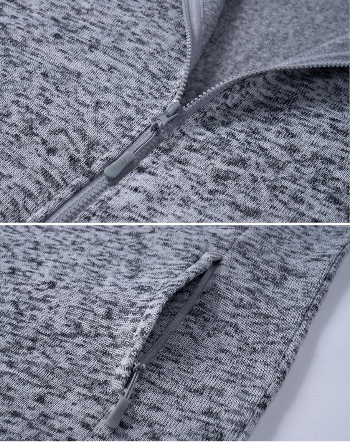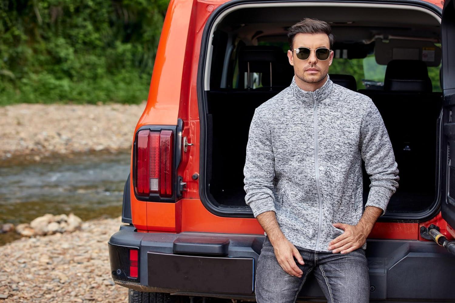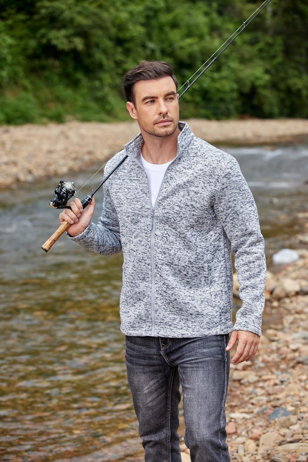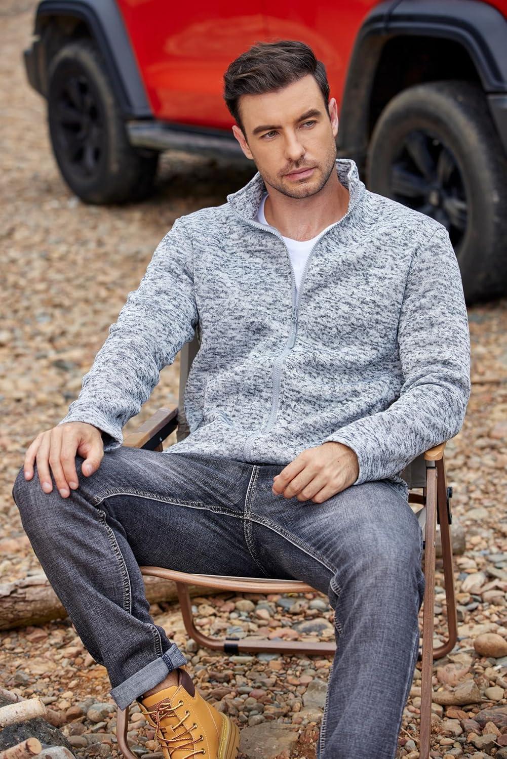 Stay warm and comfortable in this men’s fleece jacket made from 100% polyester. The outer surface features a stylish knitted texture, while the thin fleece lining is lightweight, soft, and cozy—perfect for chilly days (not waterproof). Designed with a full zip, stand-up collar, and straight fit, it offers easy layering and a relaxed feel. Two zippered hand pockets and two roomy inner pockets keep essentials like your phone, keys, and wallet secure. Ideal for fall, winter, and cool spring, whether for home, office, hiking, travel, or daily wear. Wear it over a T-shirt in mild weather or layer under a coat for extra warmth in colder months. Machine wash on a gentle cycle and tumble dry or hang to dry. Loose, straight fit—refer to size chart for best fit.