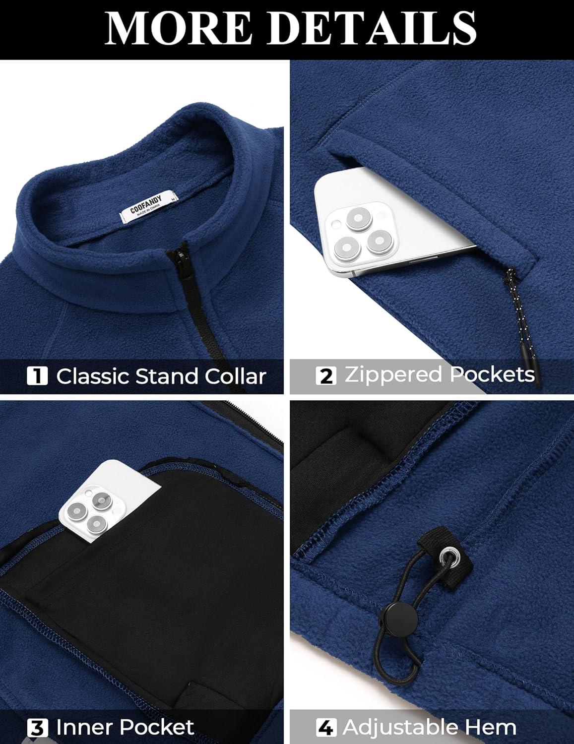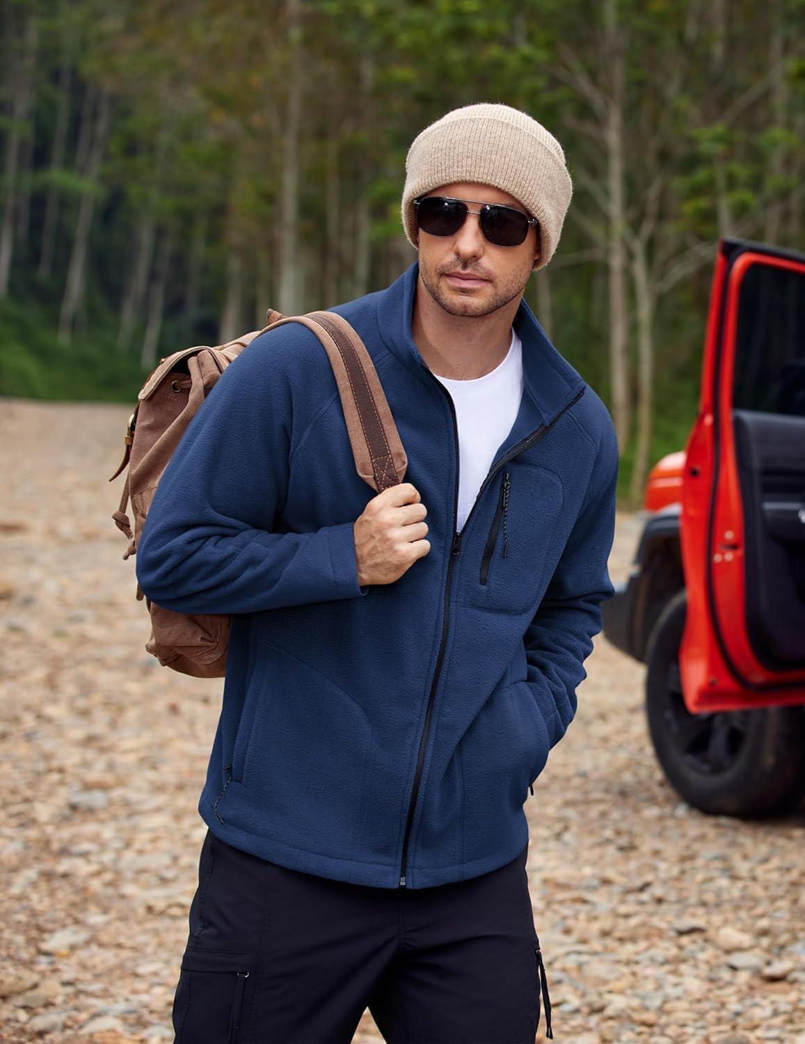 COOFANDY Men’s Fleece Jackets Full Zip Raglan Long Sleeve Lightweight Casual Outdoor Warm Jacket Coat with Pockets(Dark Blue)