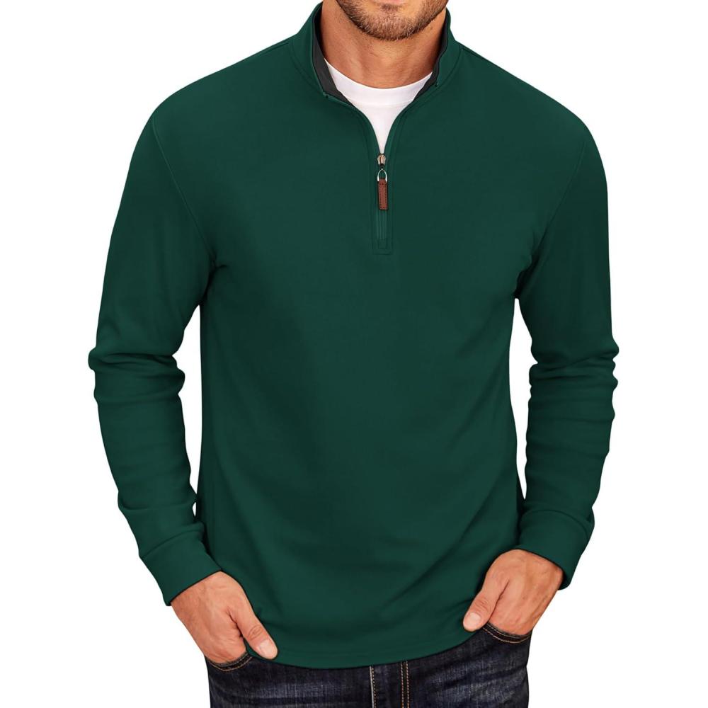 COOFANDY Men’s Fleece Quarter Zip Pullover Long Sleeve Mock Neck Sweatshirt(Dark Green)