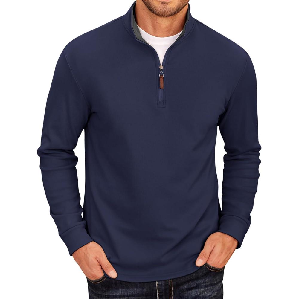 COOFANDY Men’s Fleece Quarter Zip Pullover Long Sleeve Mock Neck Sweatshirt(Navy Blue)