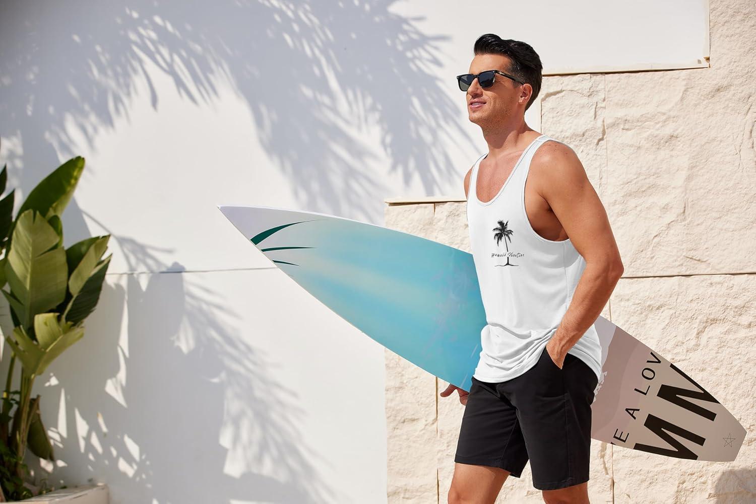 COOFANDY Men’s Floral Tank Top Sleeveless Tees All Over Print Casual Sport T-Shirts Hawaii Beach Vacation(2 Pack-white/Dark Gray)