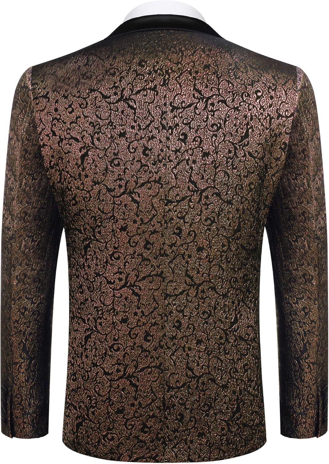 COOFANDY Men’s Floral Tuxedo Jacket Jacquard Suit Jacket Slim Fit Blazer for Wedding, Prom, Dinner(Golden)