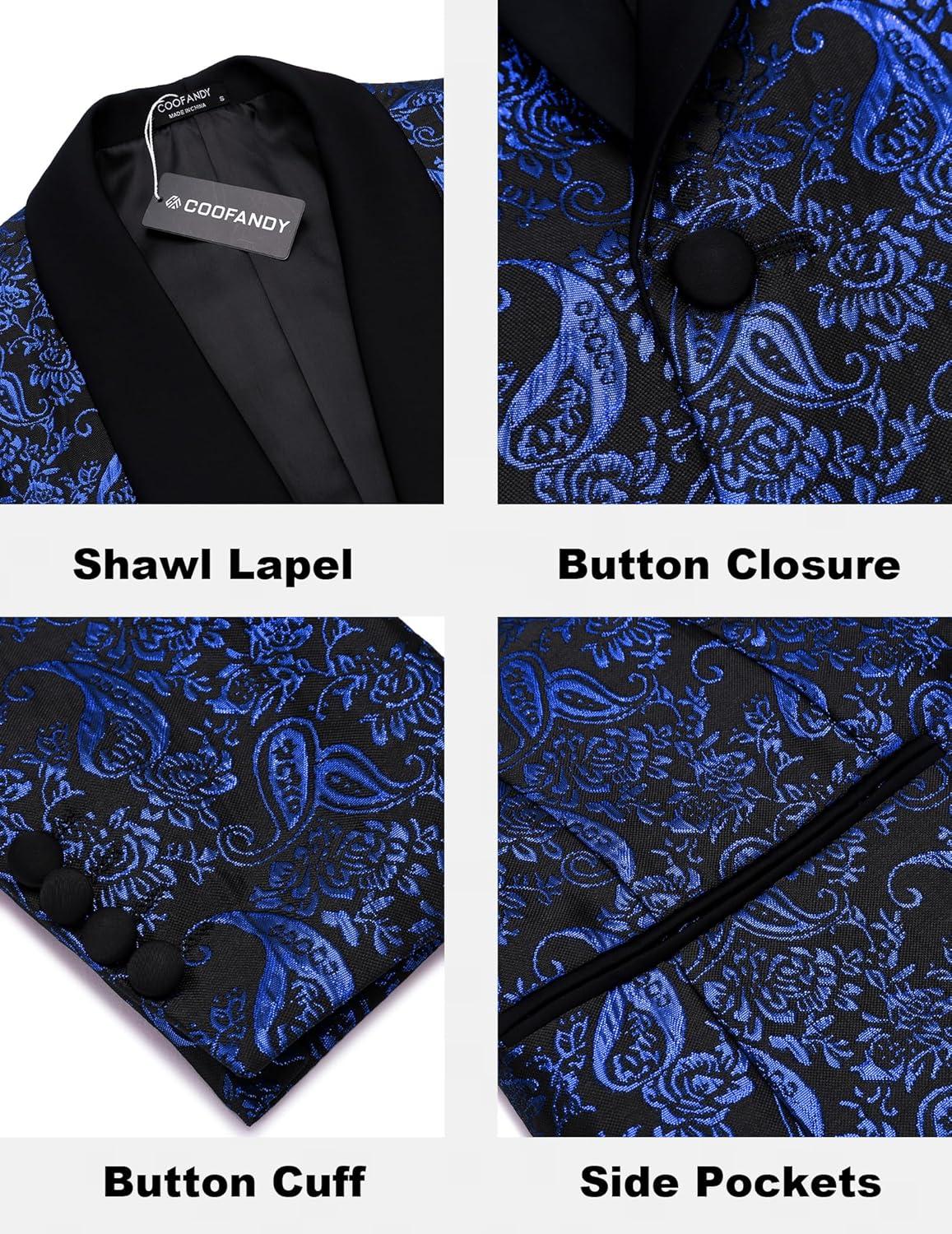 COOFANDY Men’s Floral Tuxedo Jacket Jacquard Suit Jacket Slim Fit Blazer for Wedding, Prom, Dinner(Type02-blue)