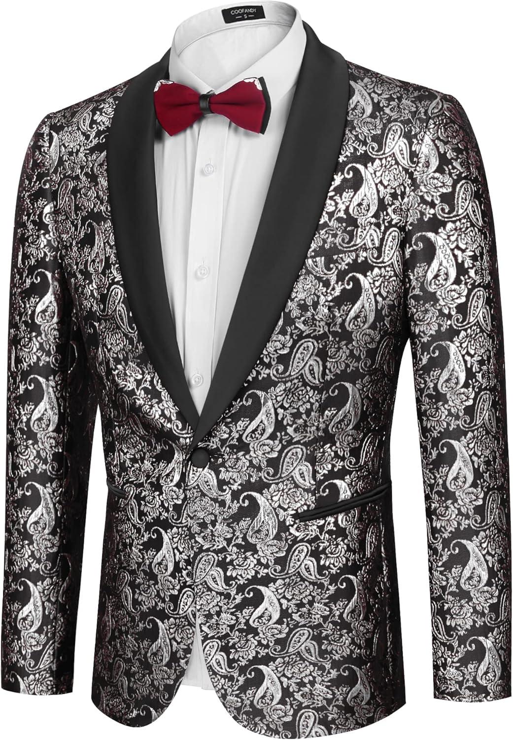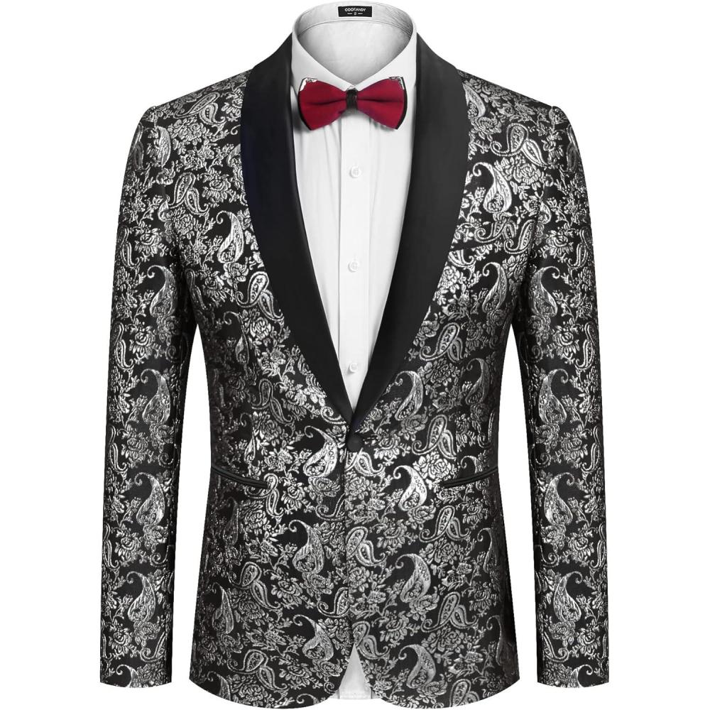 COOFANDY Men’s Floral Tuxedo Jacket Jacquard Suit Jacket Slim Fit Blazer for Wedding, Prom, Dinner(Type02-silver)