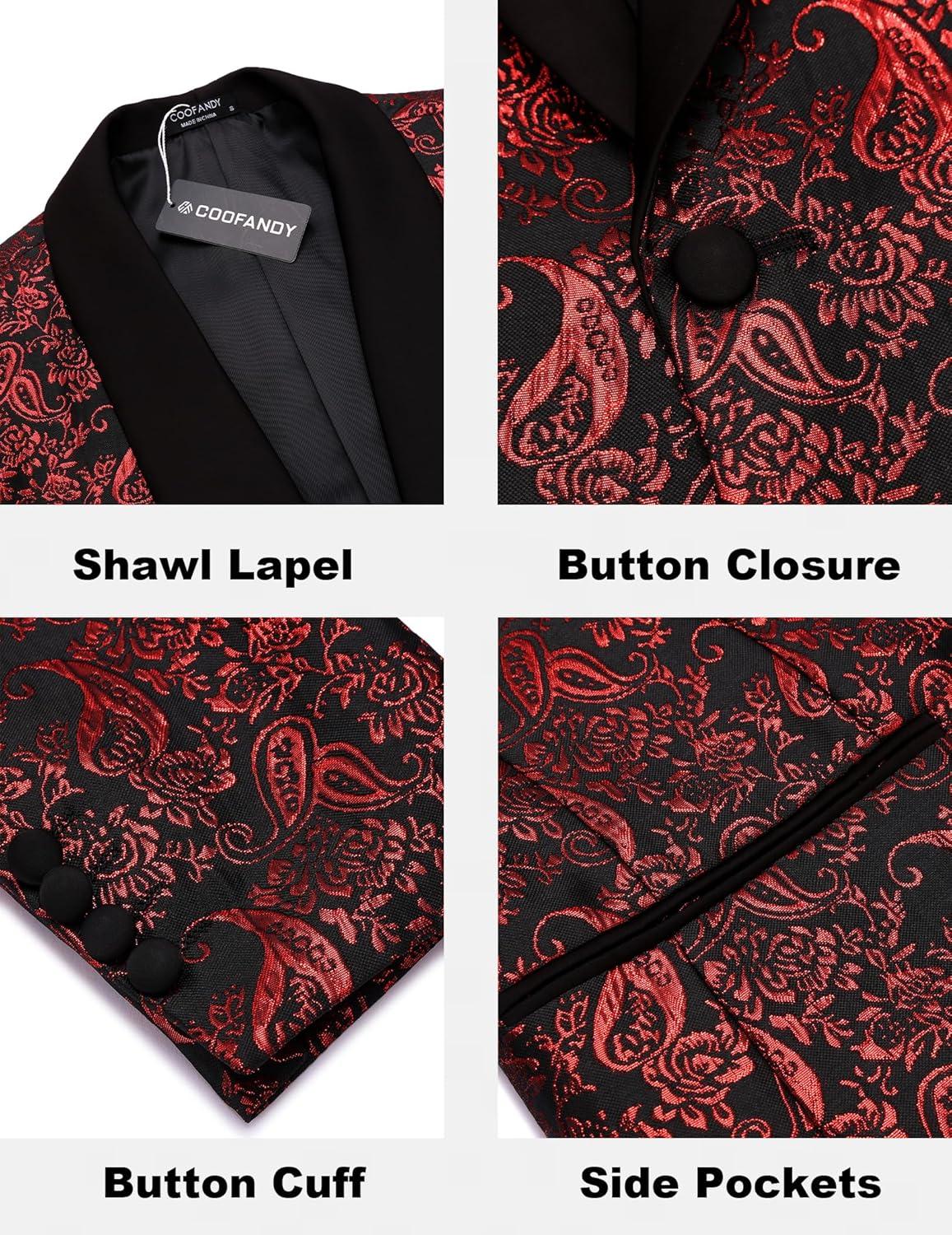 COOFANDY Men’s Floral Tuxedo Jacket Jacquard Suit Jacket Slim Fit Blazer for Wedding, Prom, Dinner(Type02-wine Red)