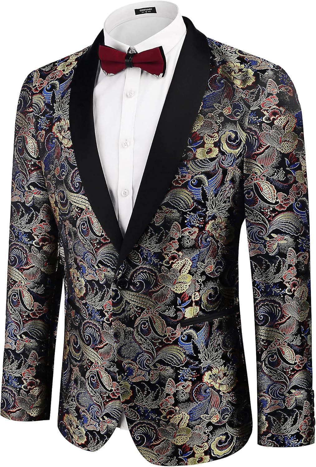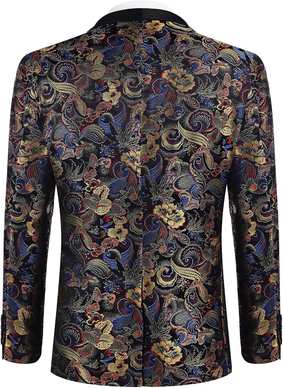 COOFANDY Men’s Floral Tuxedo Jacket Luxury Embroidered Stylish Suit Blazer Jacket for Wedding Party Dinner(Butterfly-black)