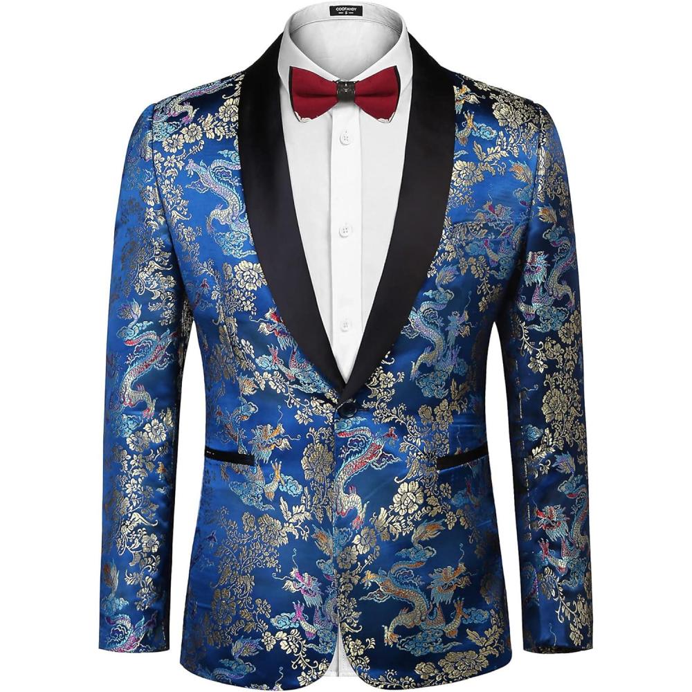 COOFANDY Men’s Floral Tuxedo Jacket Luxury Embroidered Stylish Suit Blazer Jacket for Wedding Party Dinner(Dark Blue)