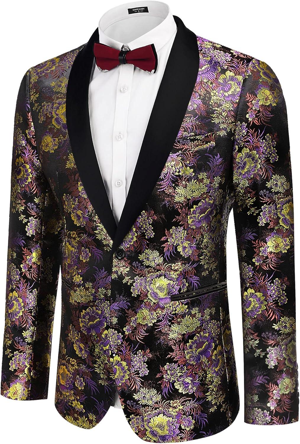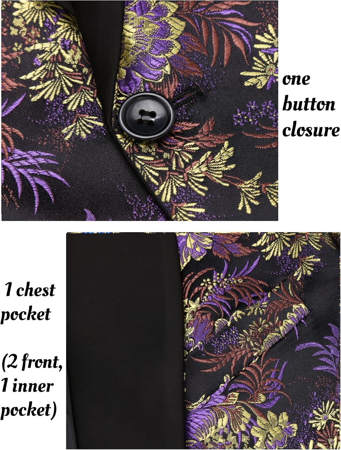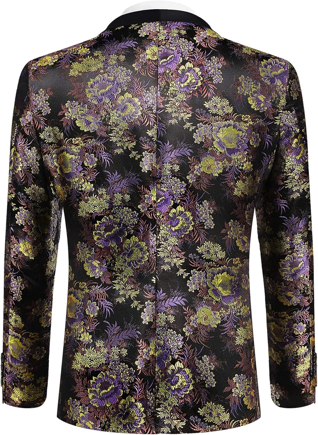 COOFANDY Men’s Floral Tuxedo Jacket Luxury Embroidered Stylish Suit Blazer Jacket for Wedding Party Dinner(Flower-black)