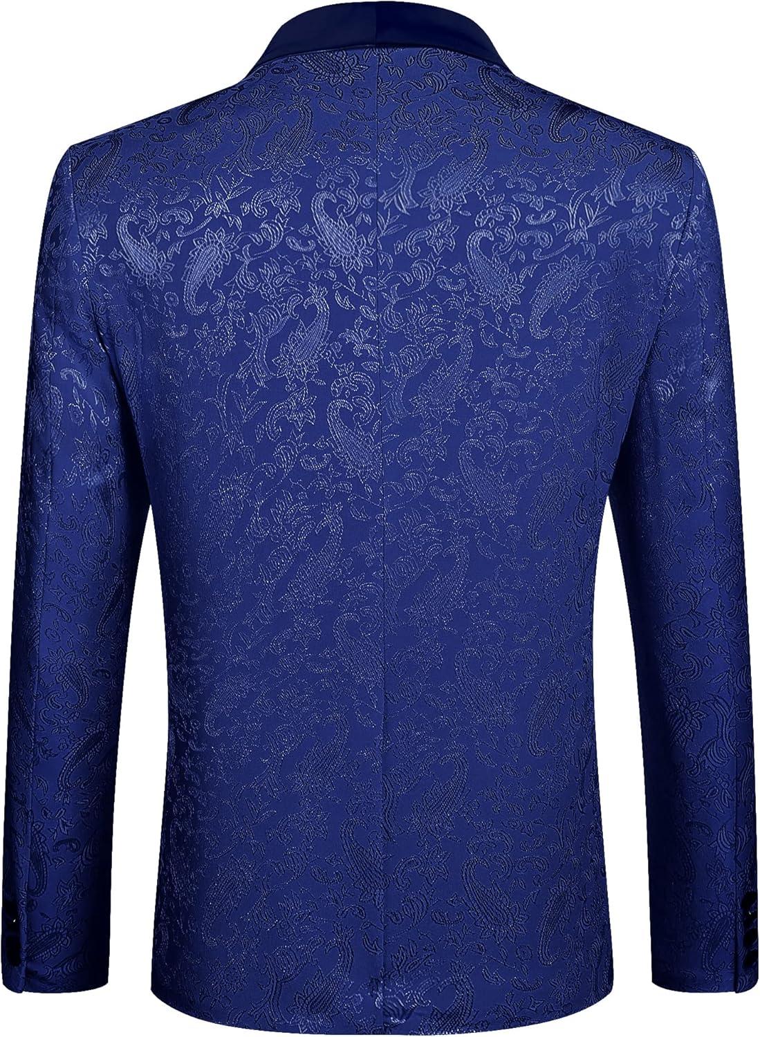 COOFANDY Men’s Floral Tuxedo Jacket Paisley Shawl Lapel Stylish Suit Blazer Jacket for Wedding, Dinner, Party, Prom(Nave Blue)