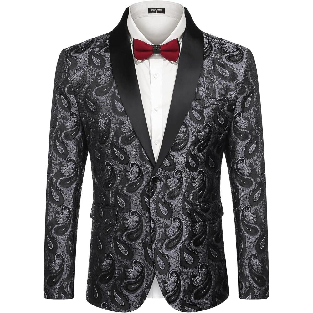 COOFANDY Mens Floral Tuxedo Jacket Paisley Shawl Lapel Suit Blazer Jacket for Dinner,Prom,Wedding(Grey)