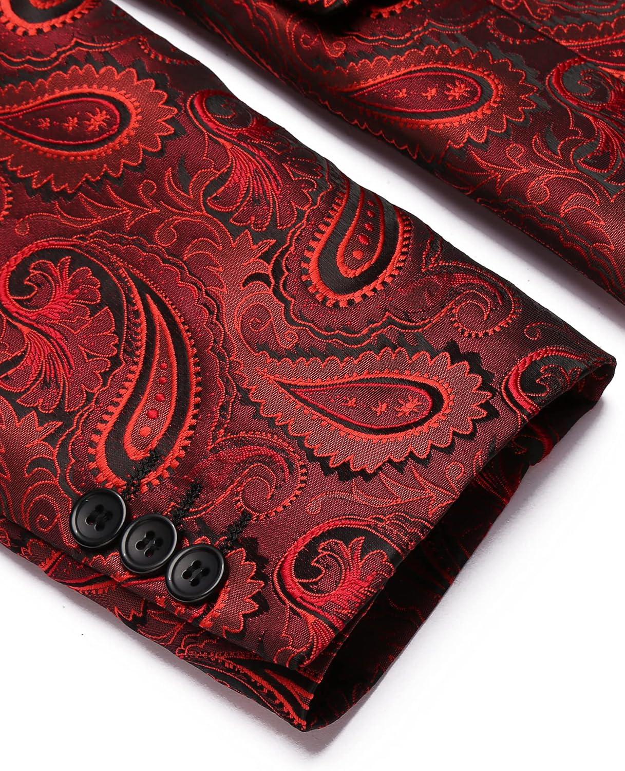COOFANDY Mens Floral Tuxedo Jacket Paisley Shawl Lapel Suit Blazer Jacket for Dinner,Prom,Wedding(Red)