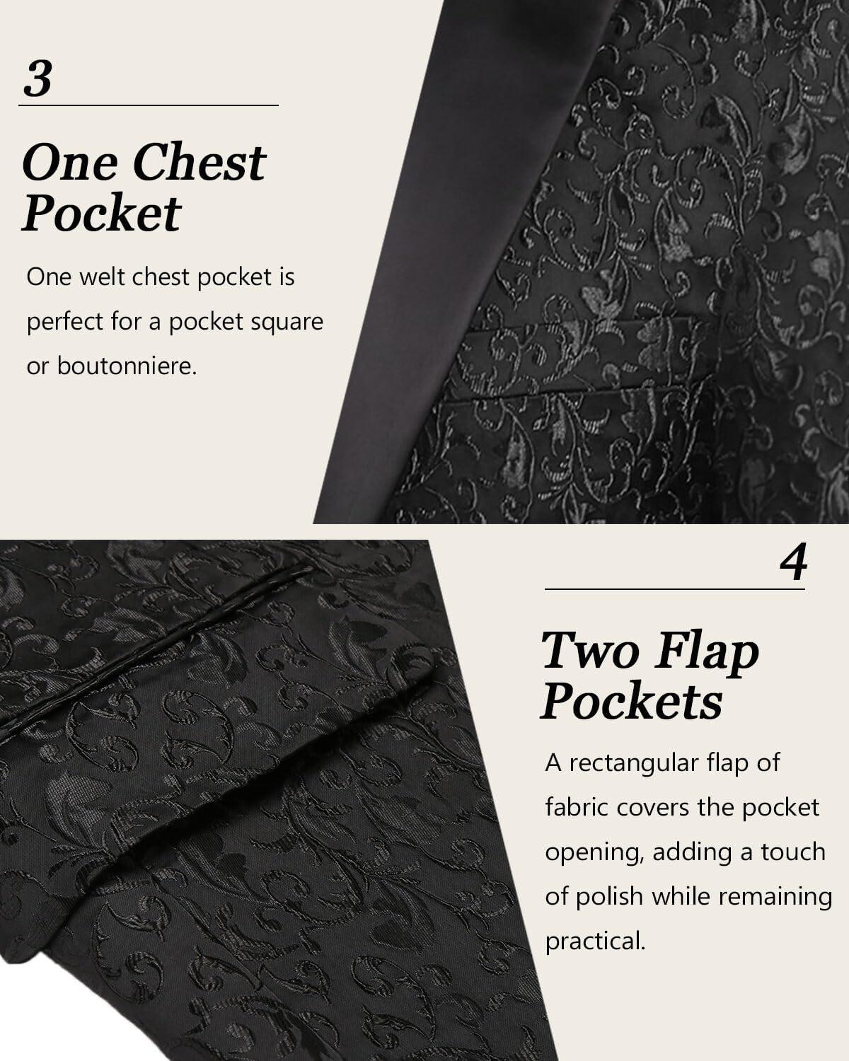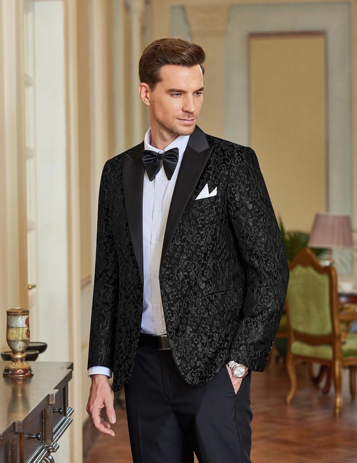 COOFANDY Mens Floral Tuxedo One Button Luxury Shiny Blazer Dinner Party Prom Wedding Suit Jacket(1 – Black)