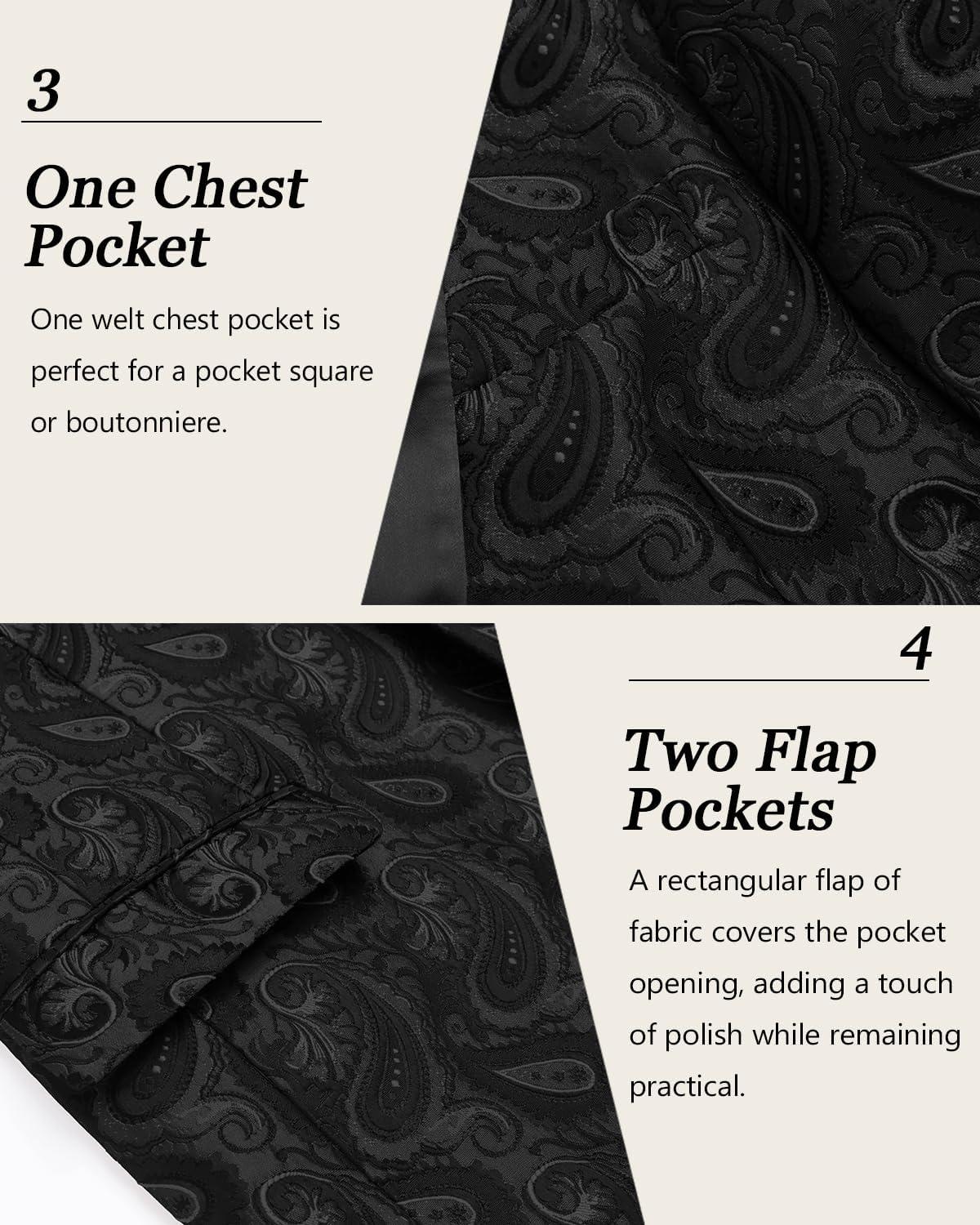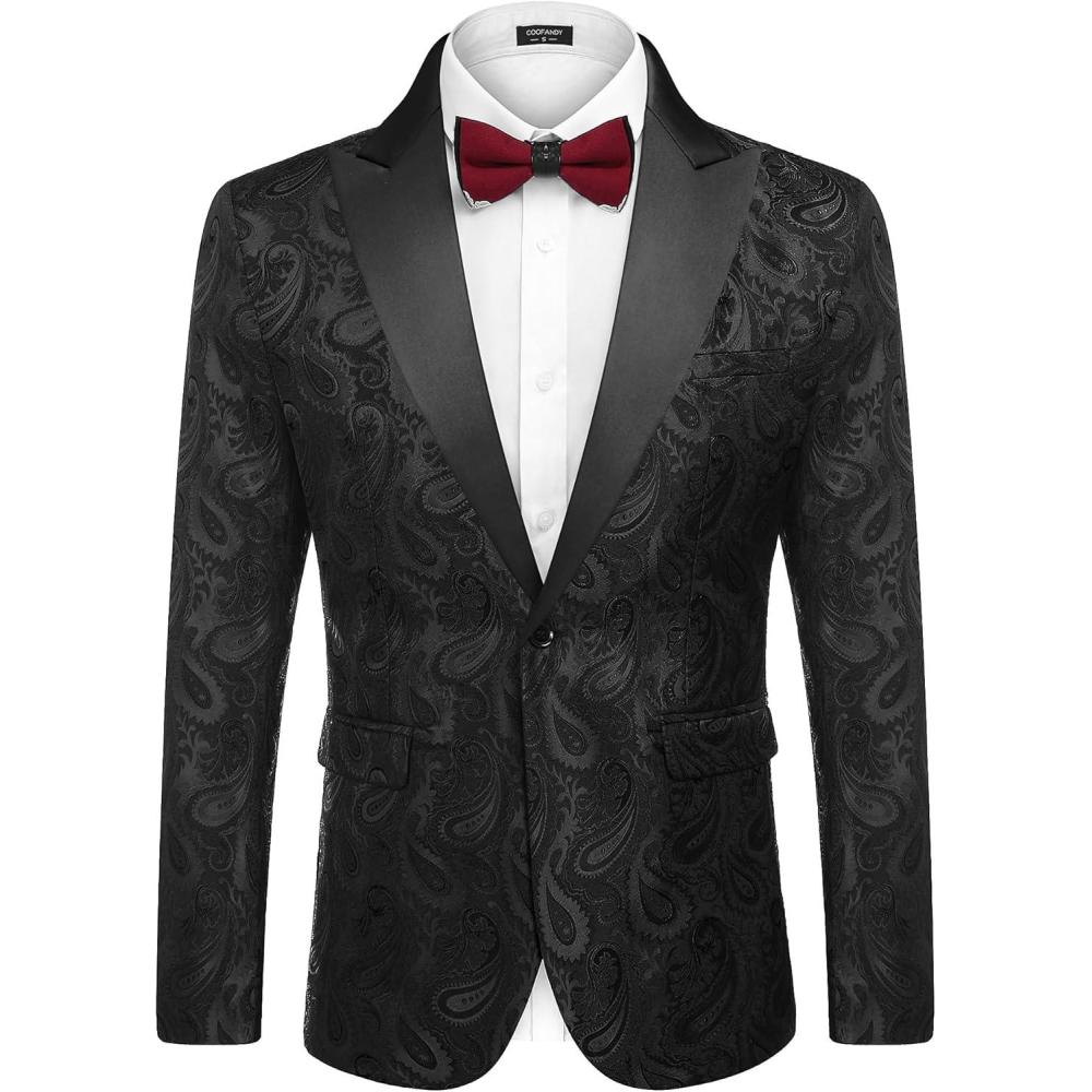 COOFANDY Mens Floral Tuxedo One Button Luxury Shiny Blazer Dinner Party Prom Wedding Suit Jacket(Black Paisley)