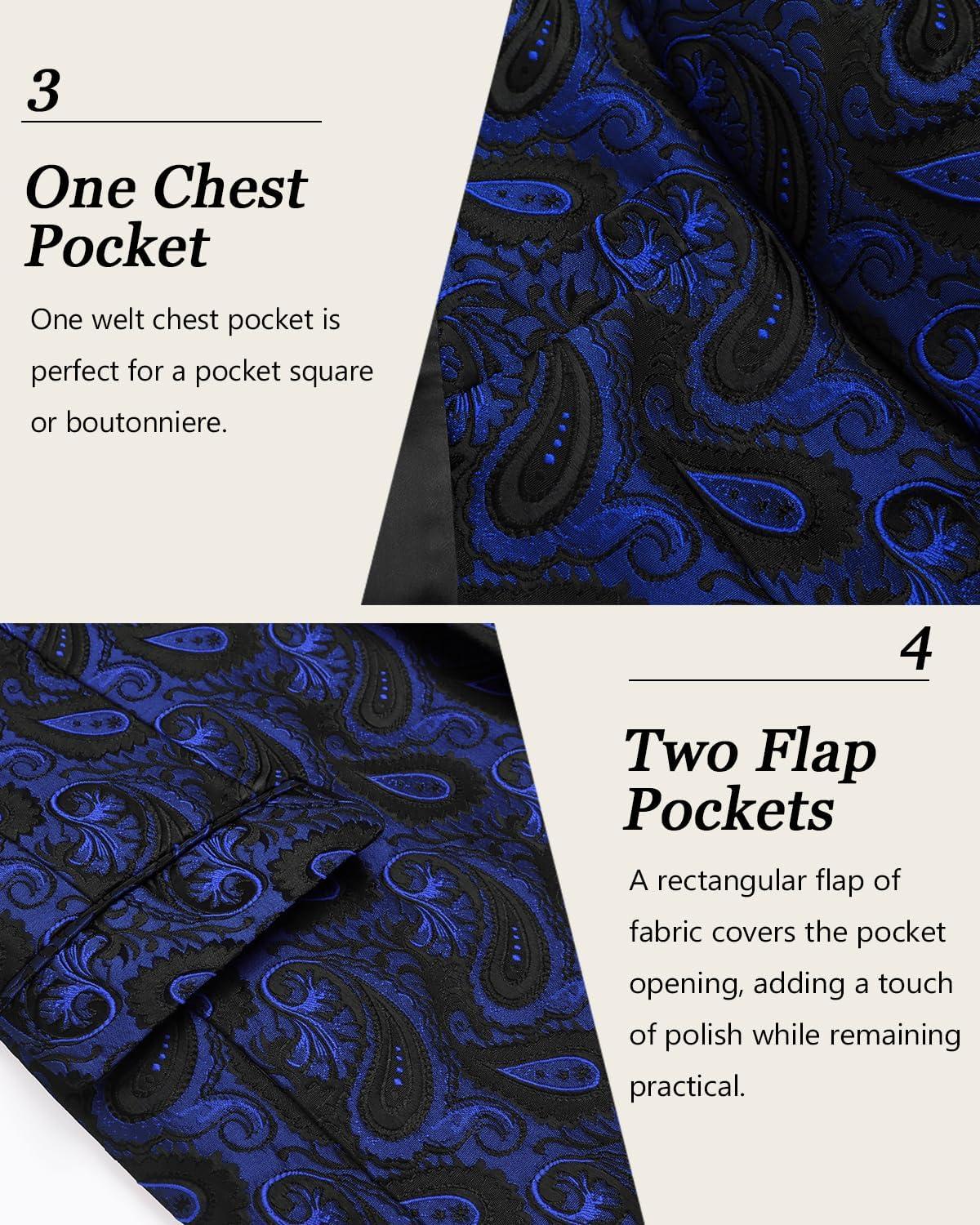 COOFANDY Mens Floral Tuxedo One Button Luxury Shiny Blazer Dinner Party Prom Wedding Suit Jacket(Blue Paisley)