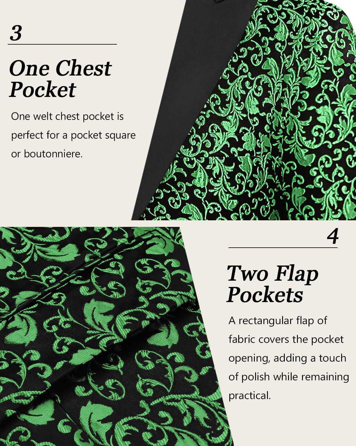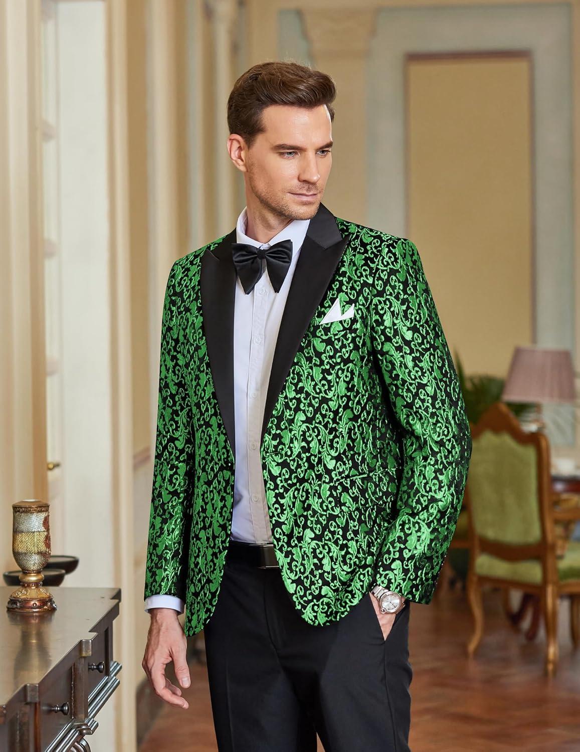COOFANDY Mens Floral Tuxedo One Button Luxury Shiny Blazer Dinner Party Prom Wedding Suit Jacket(Green Floral)