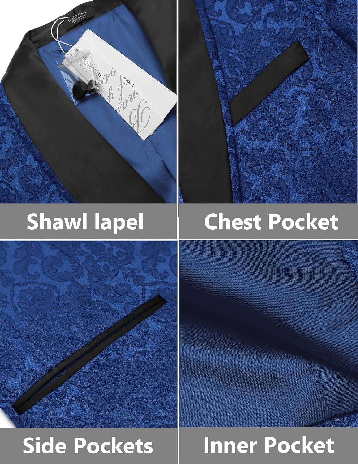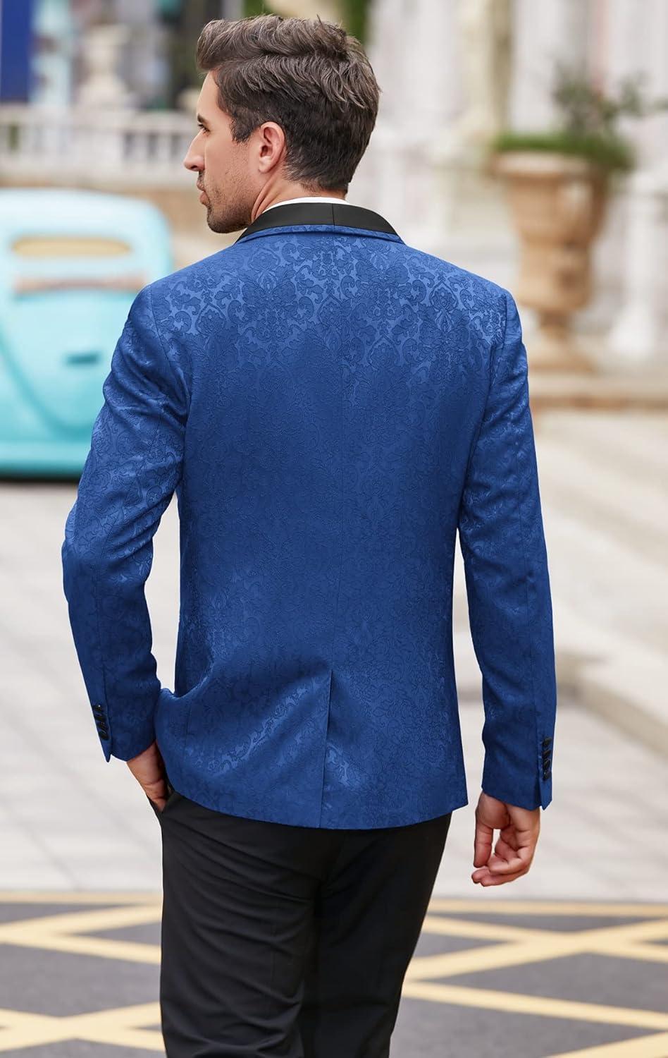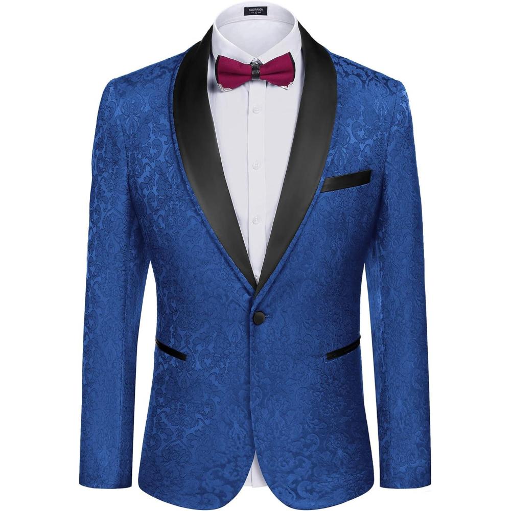 COOFANDY Men’s Floral Tuxedo Suit Jacket Slim Fit Dinner Jacket Party Prom Wedding Blazer Jackets(Blue (Jacquard ))