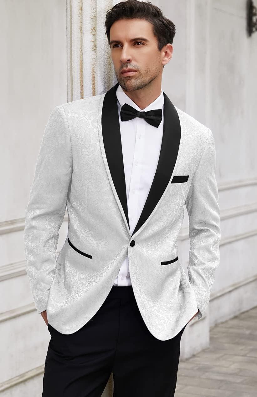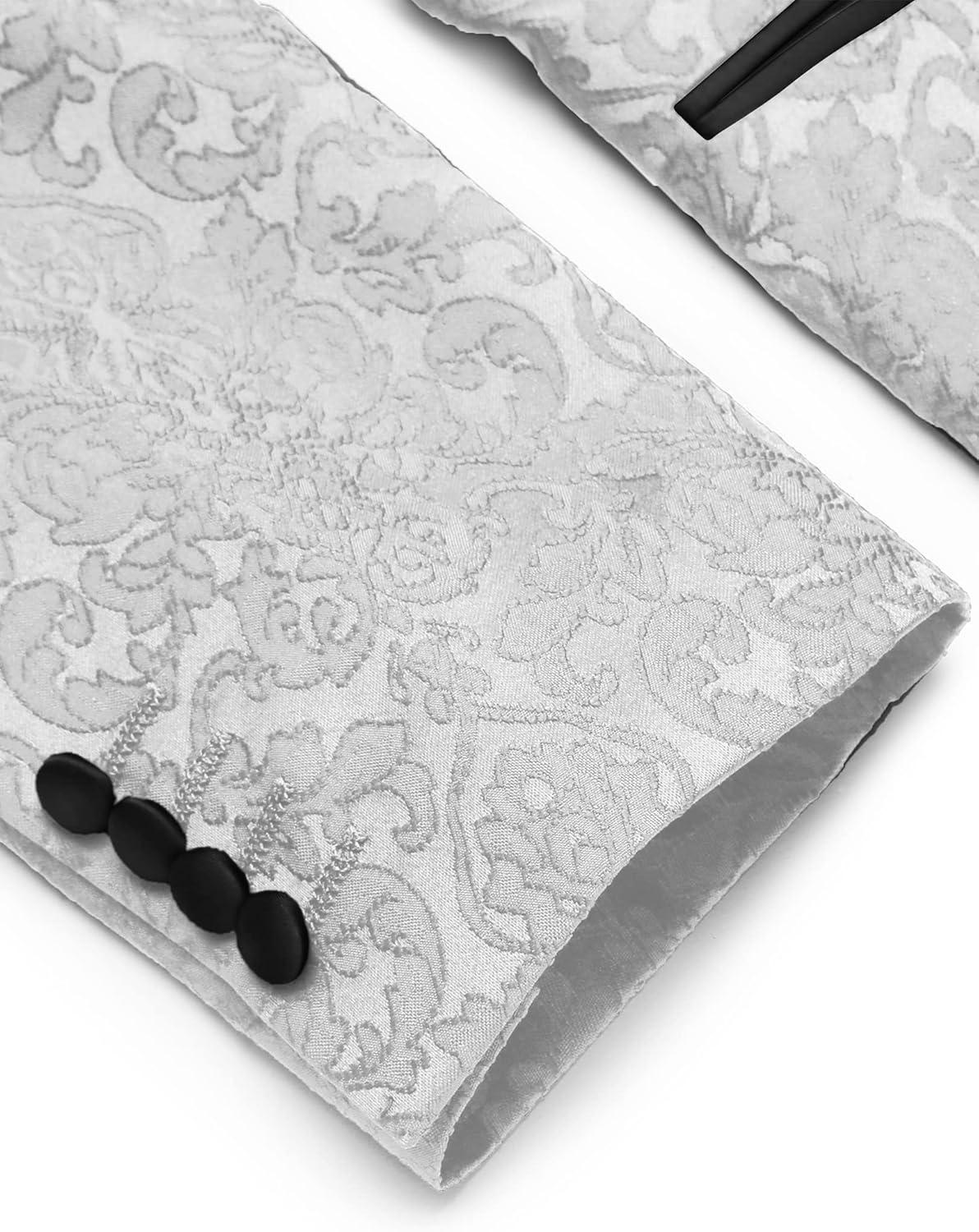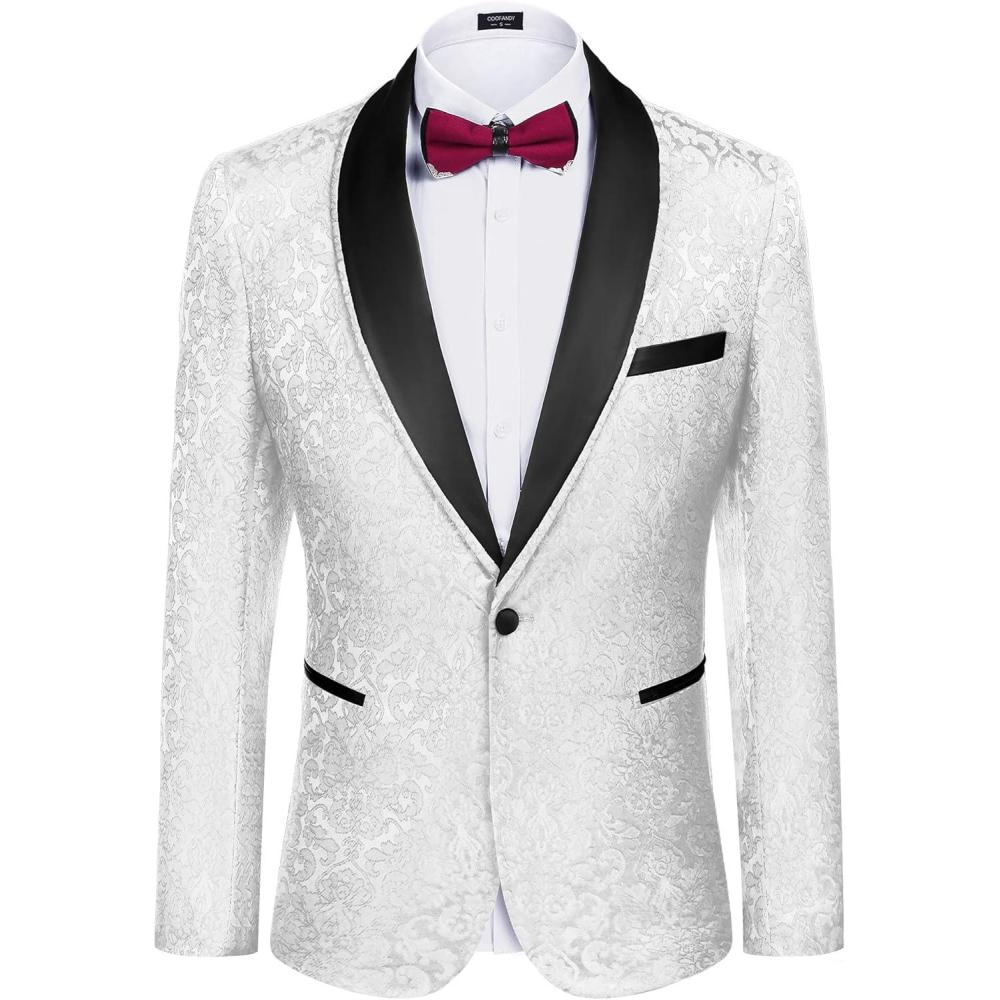 COOFANDY Men’s Floral Tuxedo Suit Jacket Slim Fit Dinner Jacket Party Prom Wedding Blazer Jackets(White (Jacquard ))