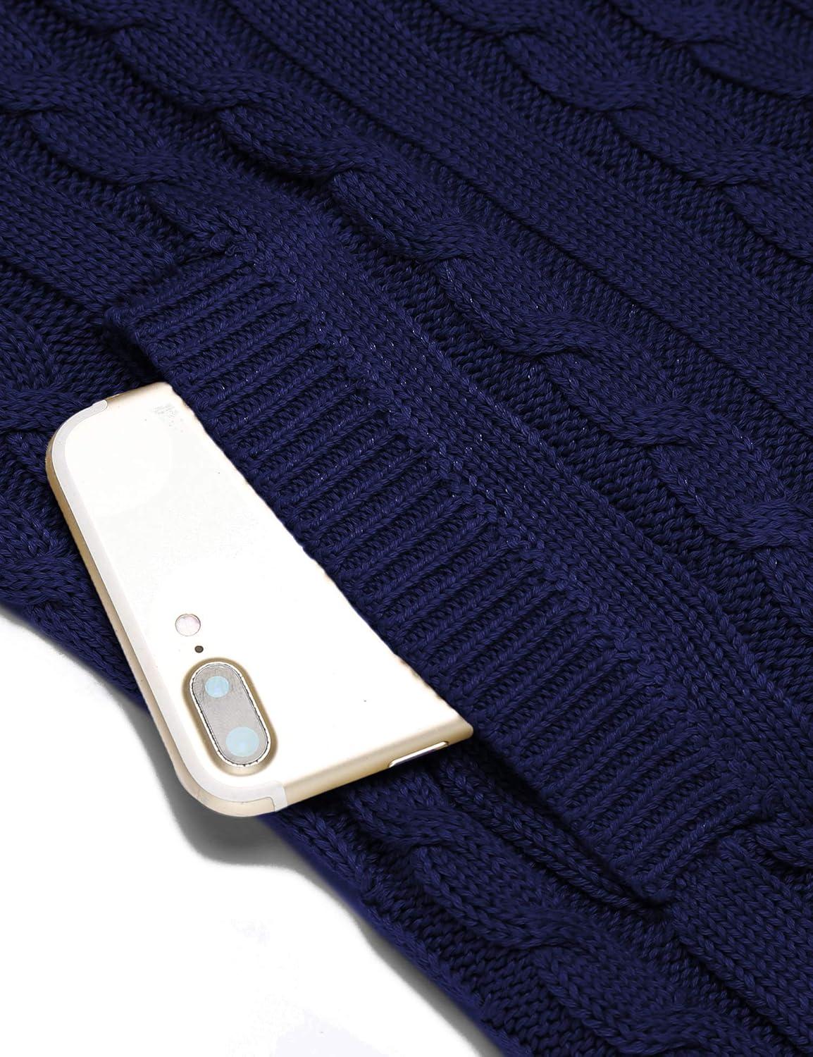 COOFANDY Men’s Full Zip Cardigan Sweater Slim Fit Cable Knitted Zip Up Sweater with Pockets(Navy Blue)