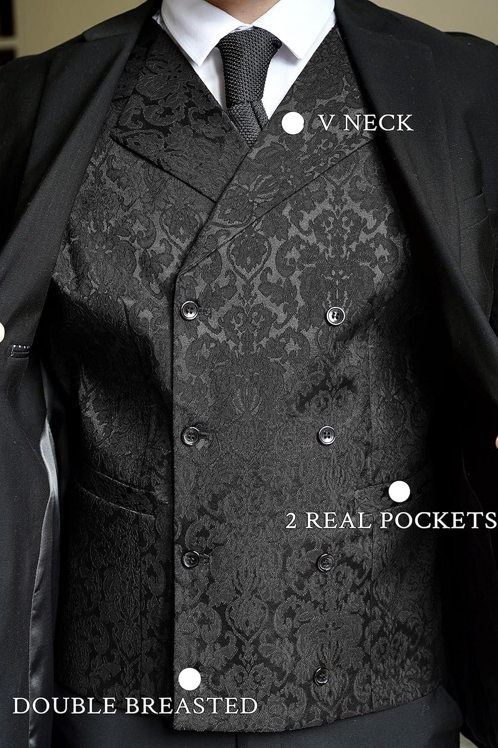 COOFANDY Mens Halloween Victorian Vest Steampunk Double Breasted Suit Vest Slim Fit Brocade Paisley Floral Waistcoat(Black)