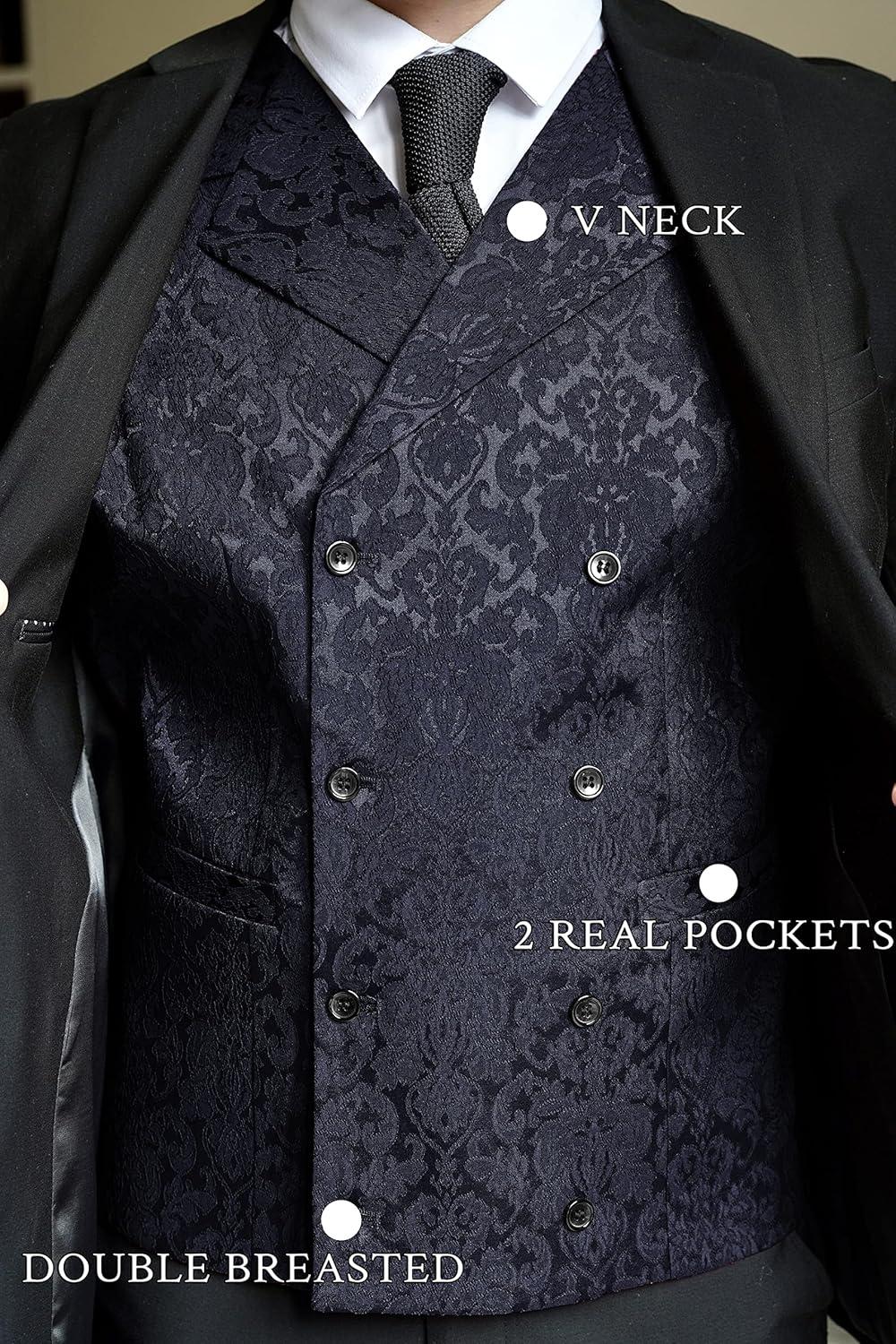 COOFANDY Mens Halloween Victorian Vest Steampunk Double Breasted Suit Vest Slim Fit Brocade Paisley Floral Waistcoat(Navy Blue)