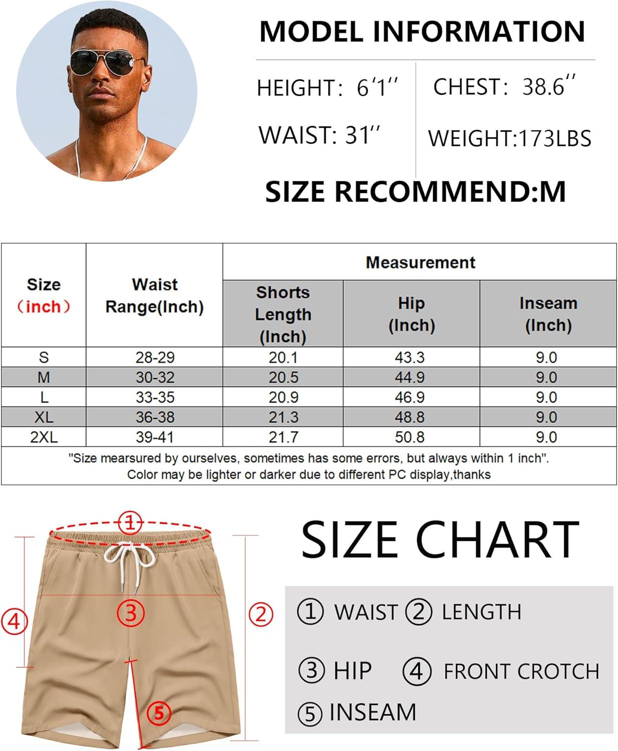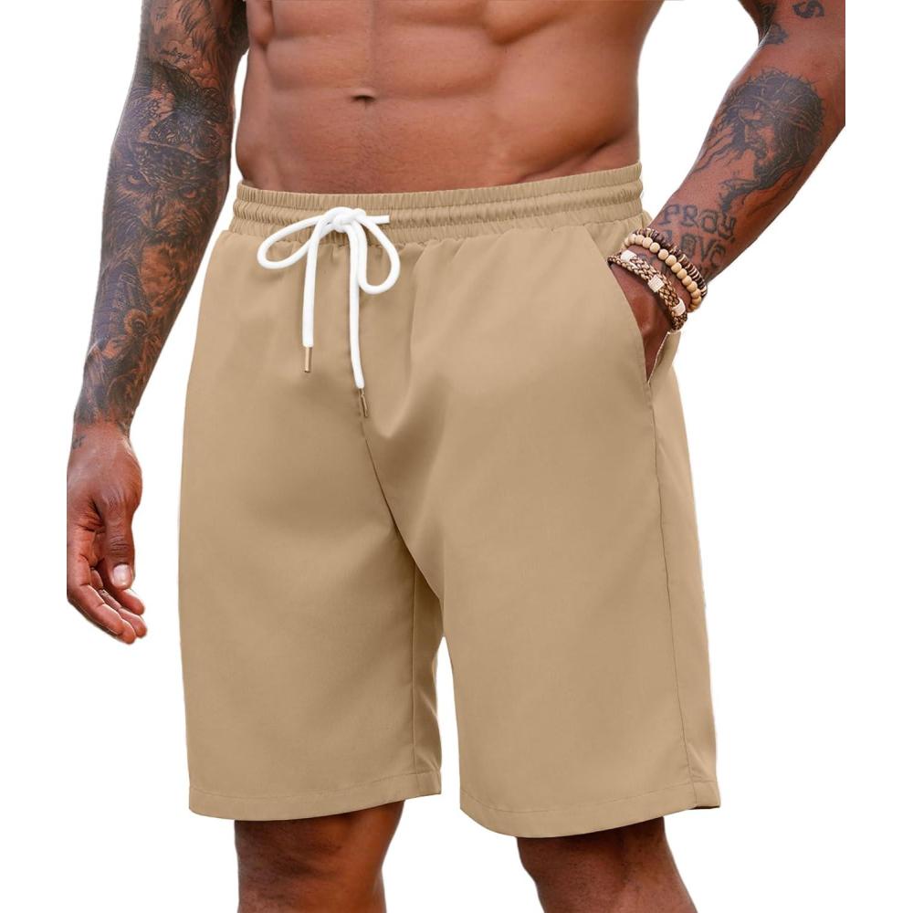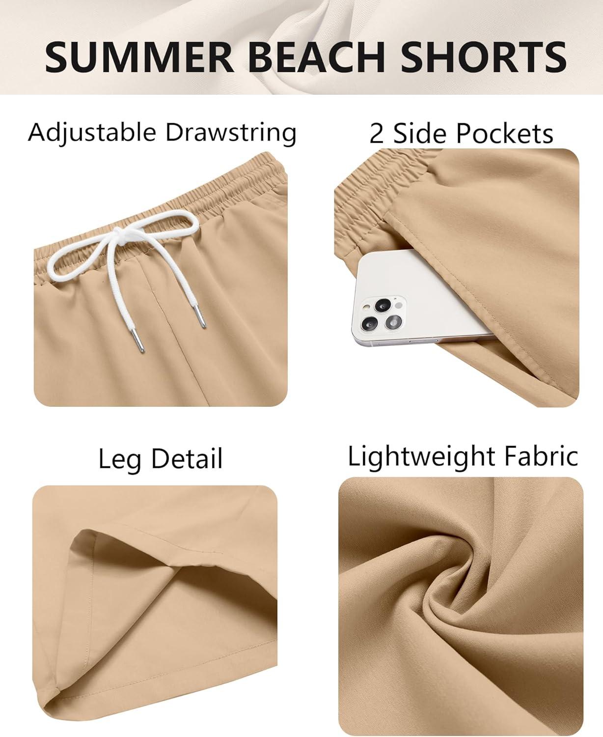 COOFANDY Men’s Hawaiian Beach Shorts Elastic Waist Drawstring Lightweight Summer Casual Shorts with Pocket(Khaki)