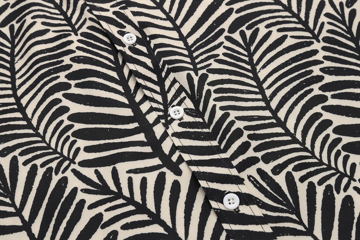 COOFANDY Mens Hawaiian Shirt Short Sleeve Button Down Shirts Tropical Floral Summer Beach Shirts(Beige- Black Leaves)