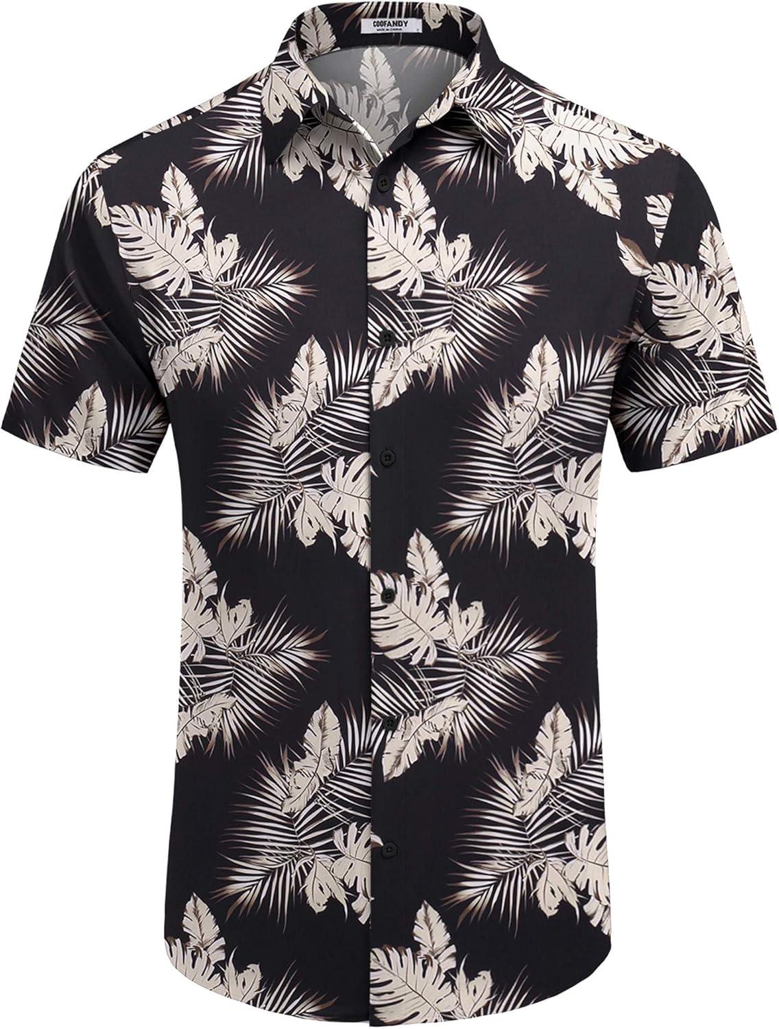 COOFANDY Mens Hawaiian Shirt Short Sleeve Button Down Shirts Tropical Floral Summer Beach Shirts(Black – Palm Leaf)
