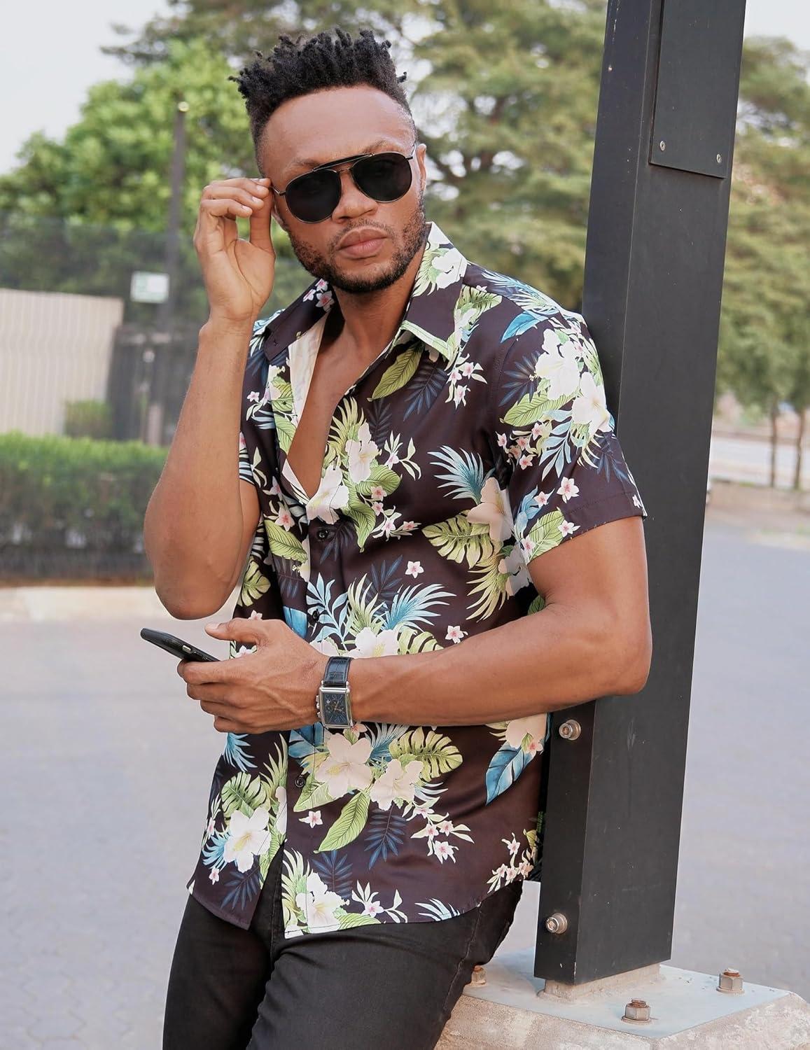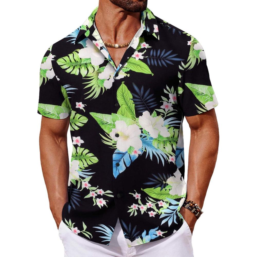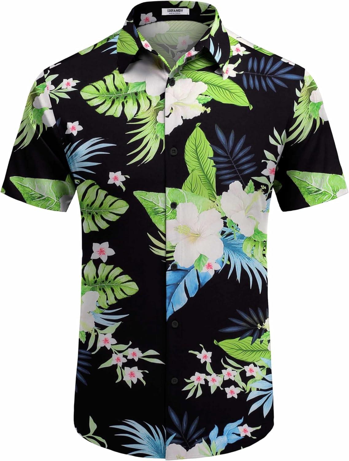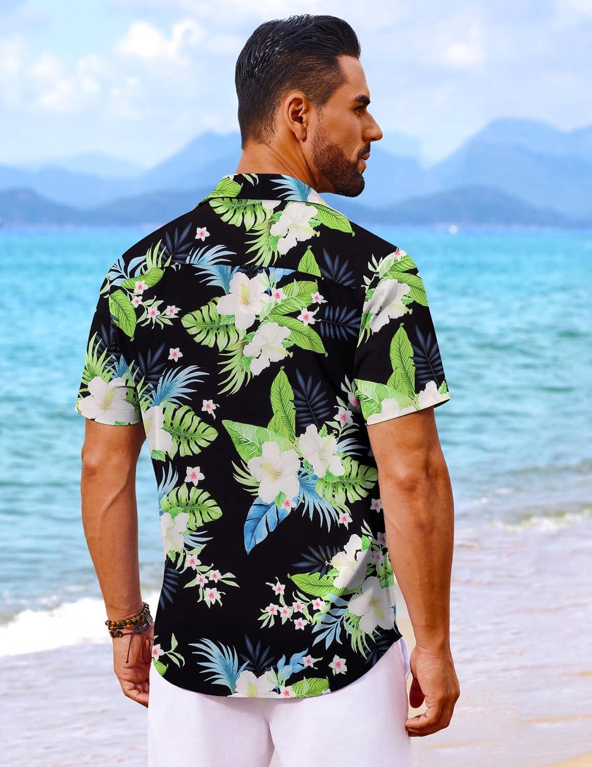 COOFANDY Mens Hawaiian Shirt Short Sleeve Button Down Shirts Tropical Floral Summer Beach Shirts(Black – Summer Vitality)