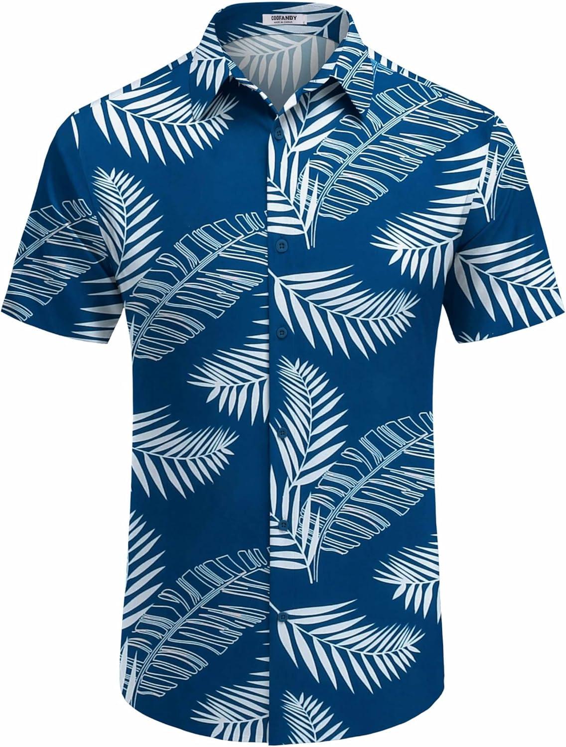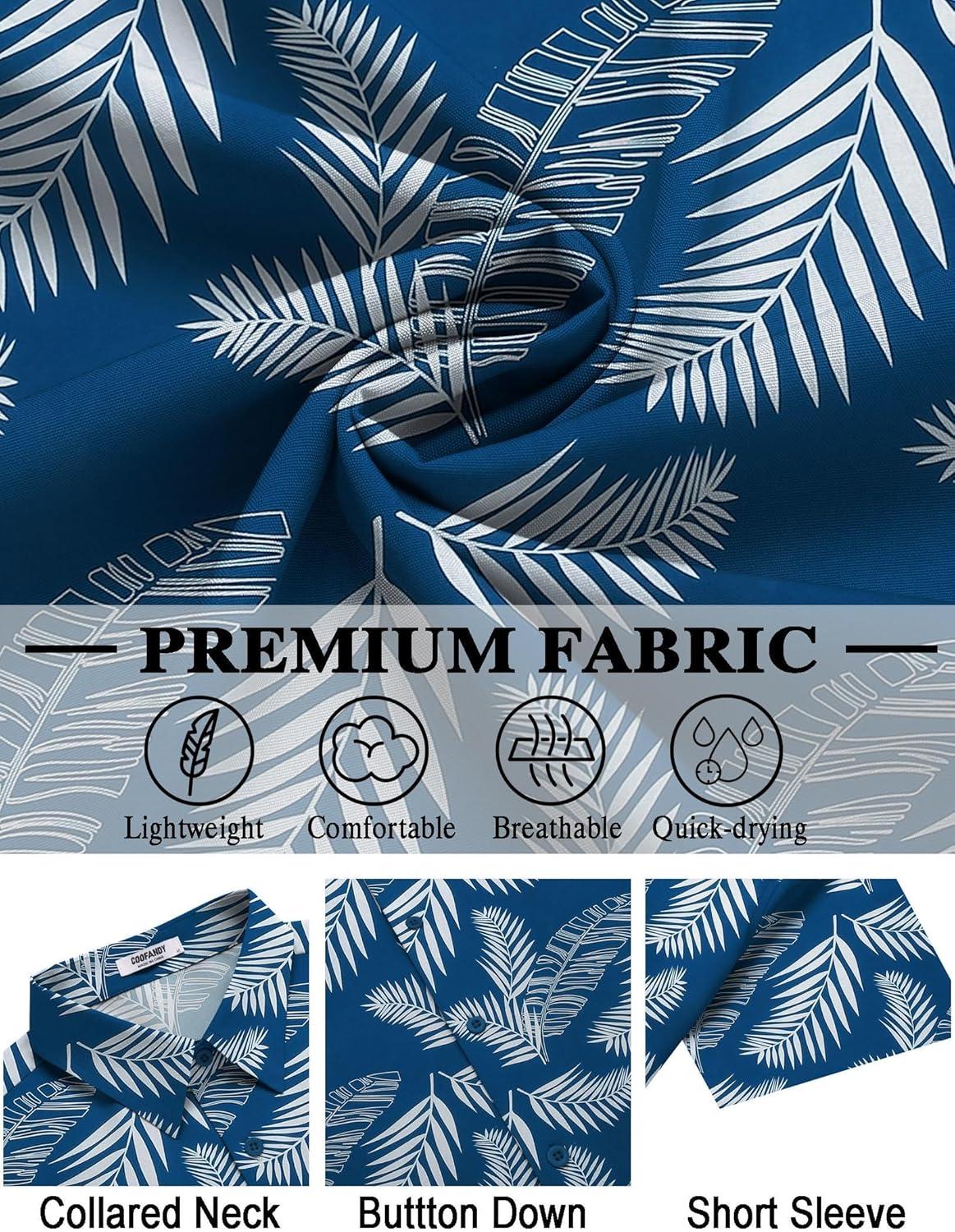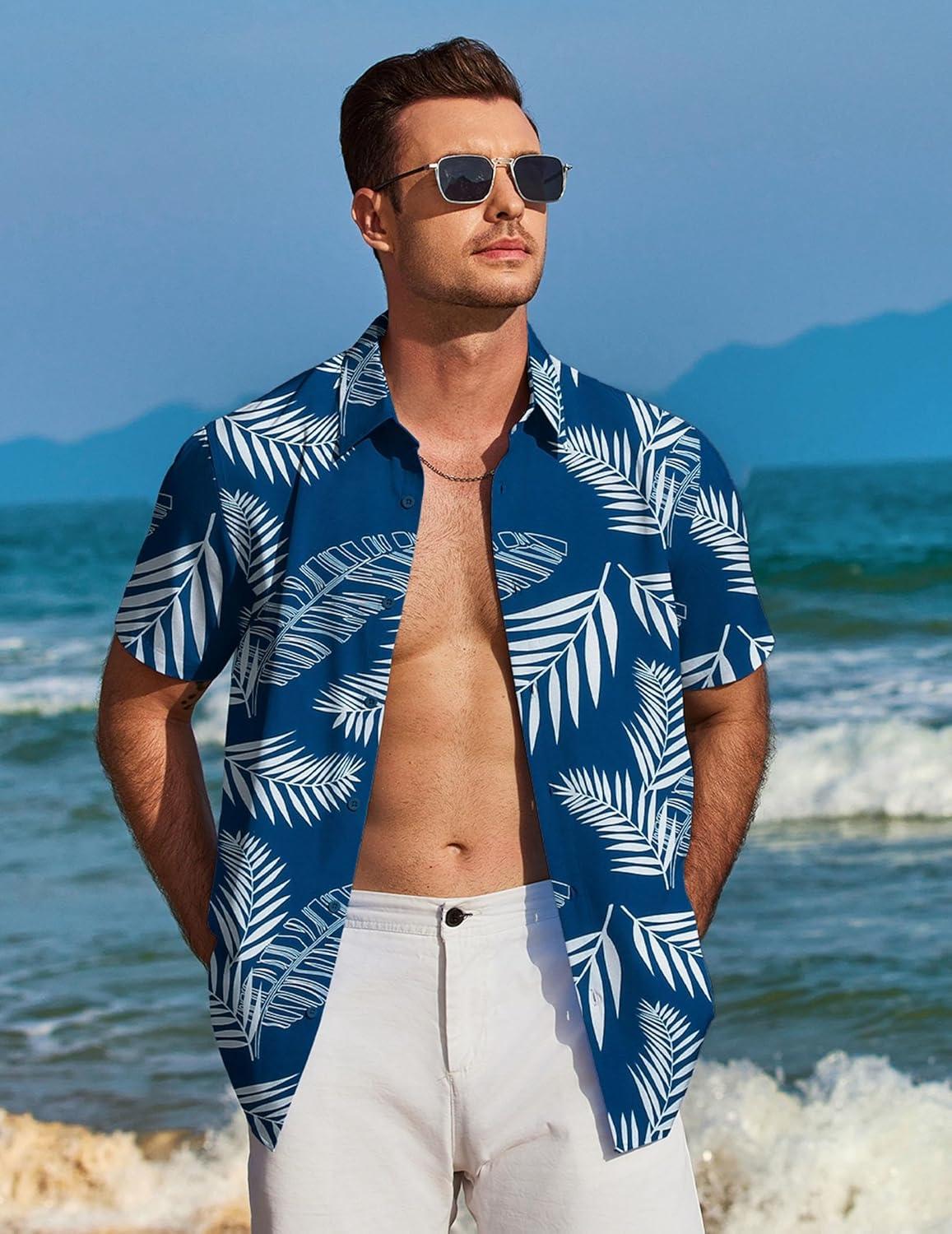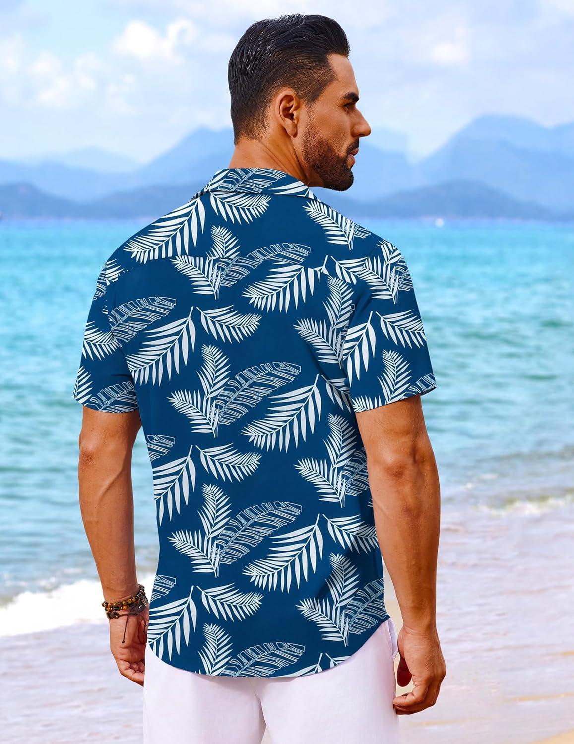 COOFANDY Mens Hawaiian Shirt Short Sleeve Button Down Shirts Tropical Floral Summer Beach Shirts(Blue – Palm Leaf)