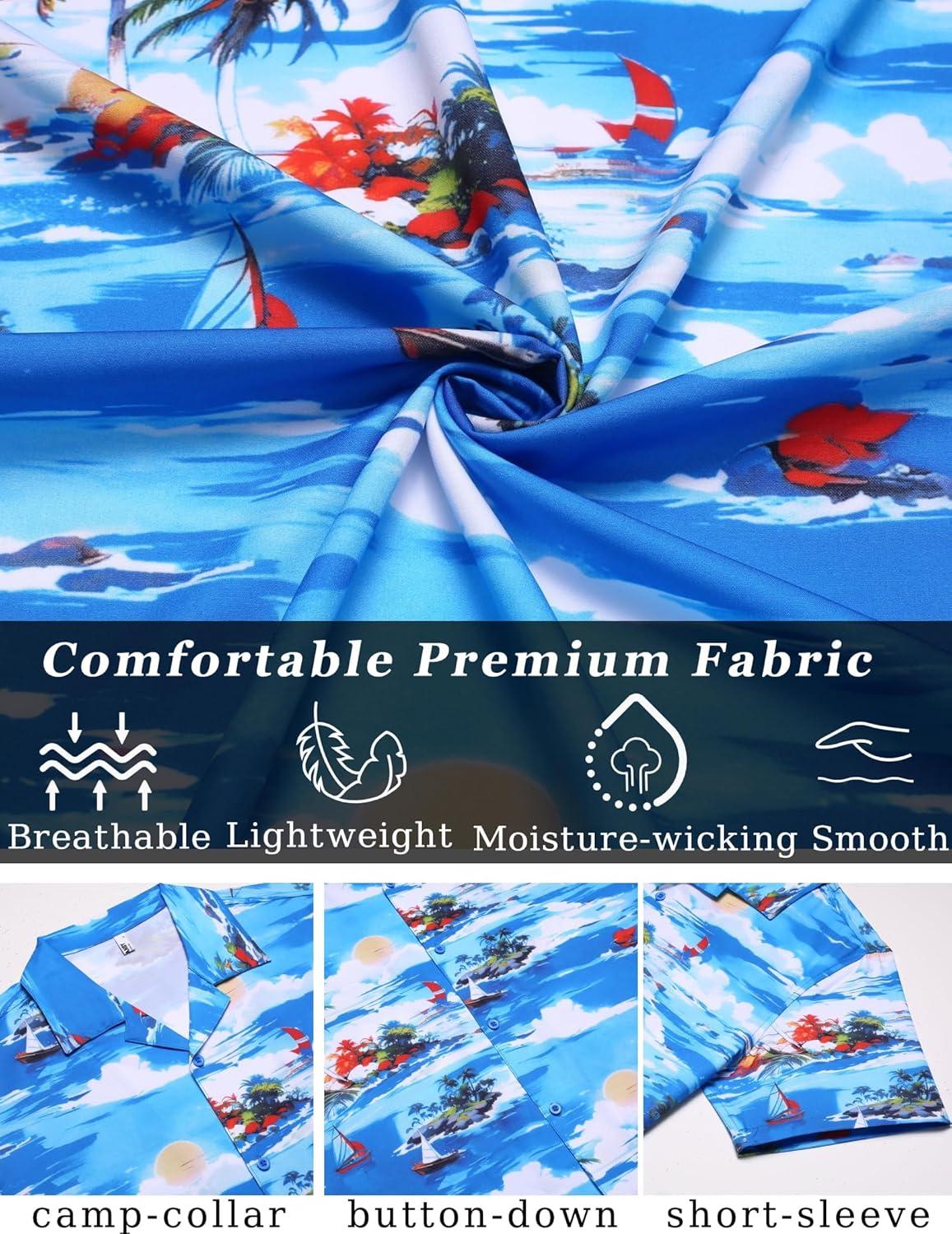 COOFANDY Mens Hawaiian Shirt Short Sleeve Button Down Shirts Tropical Floral Summer Beach Shirts(Coconut Tree-blue)