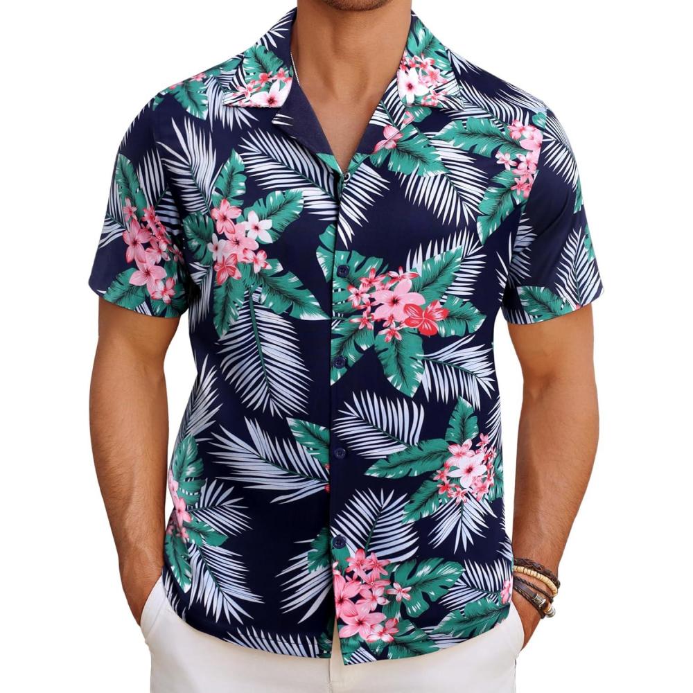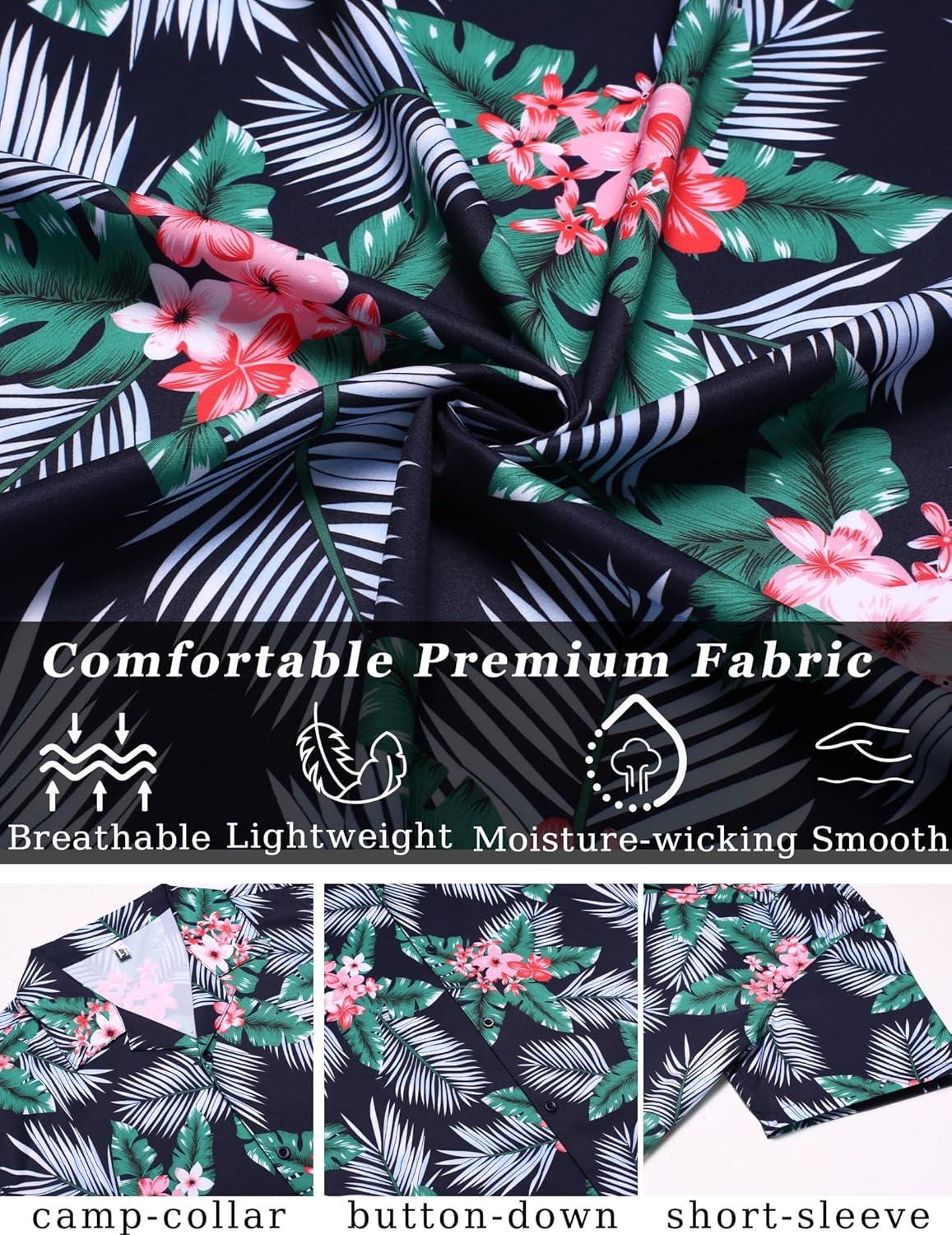COOFANDY Mens Hawaiian Shirt Short Sleeve Button Down Shirts Tropical Floral Summer Beach Shirts(Flower Leaves-black)
