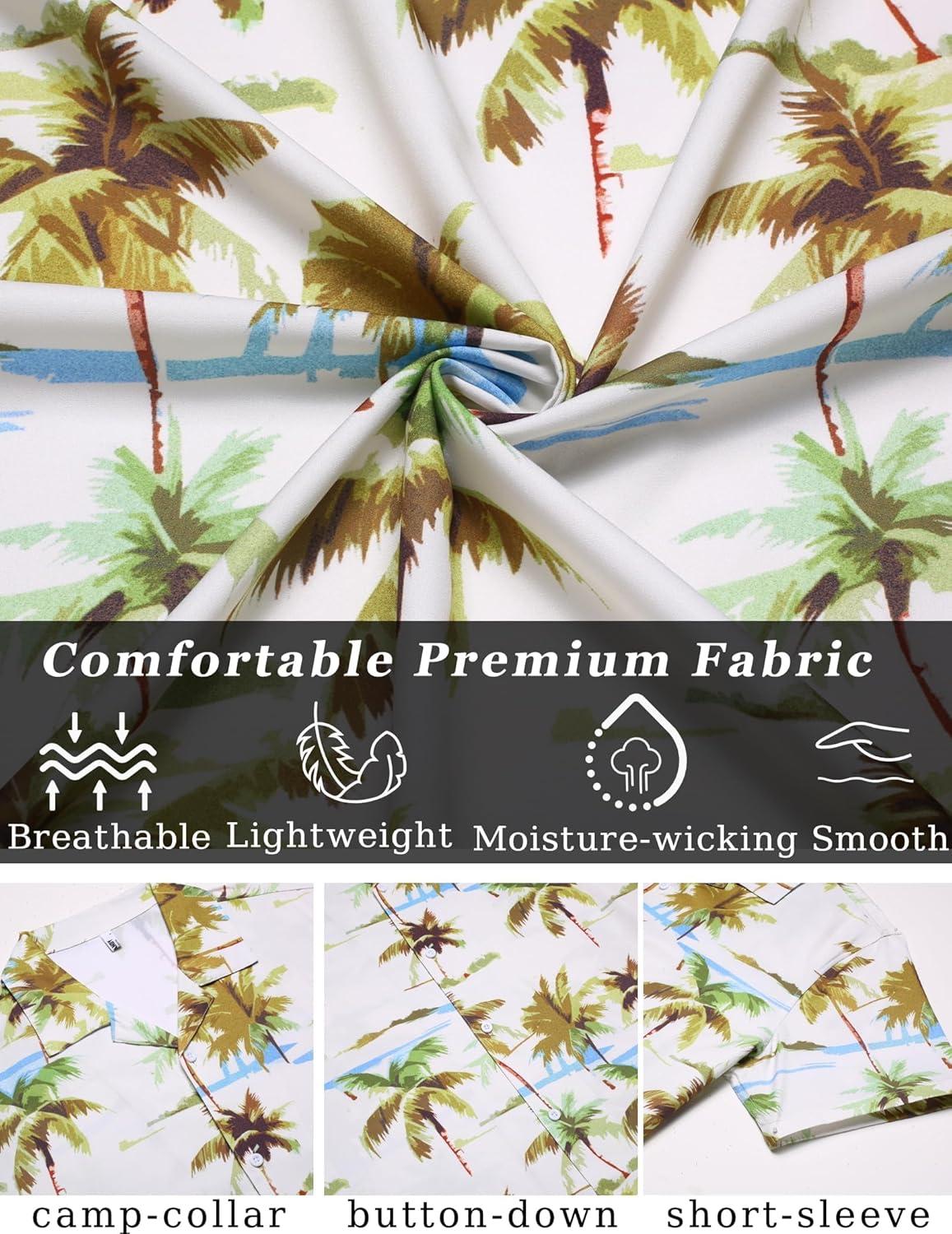 COOFANDY Mens Hawaiian Shirt Short Sleeve Button Down Shirts Tropical Floral Summer Beach Shirts(Green Coconut Tree-white)