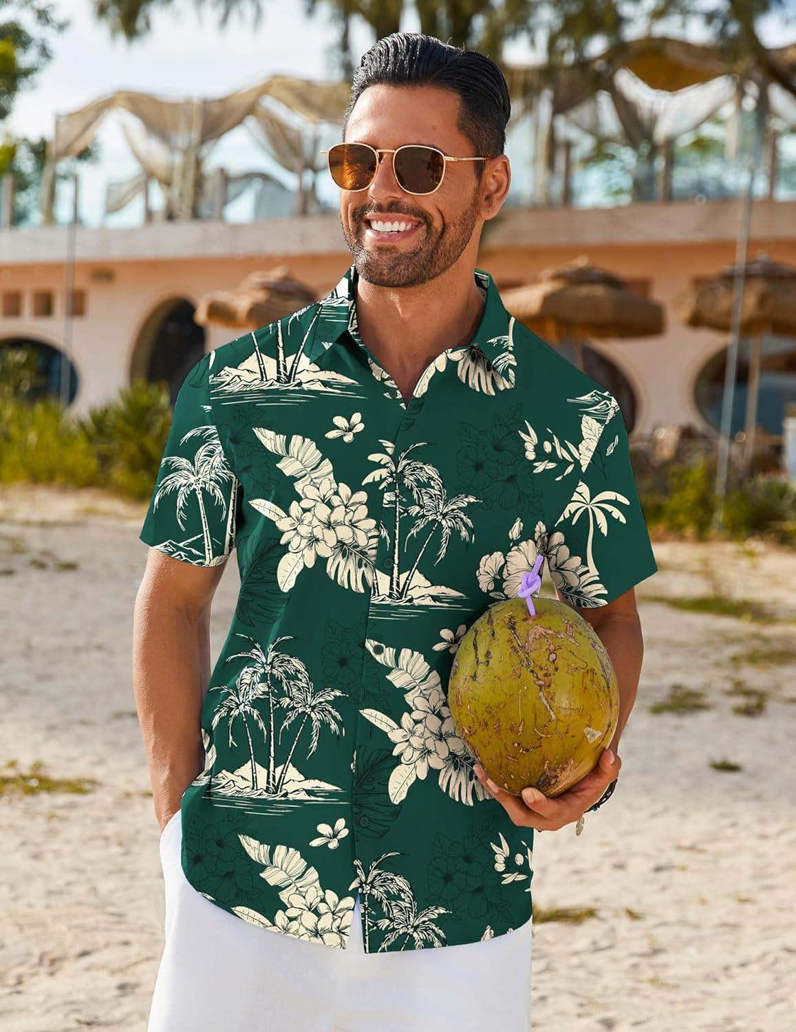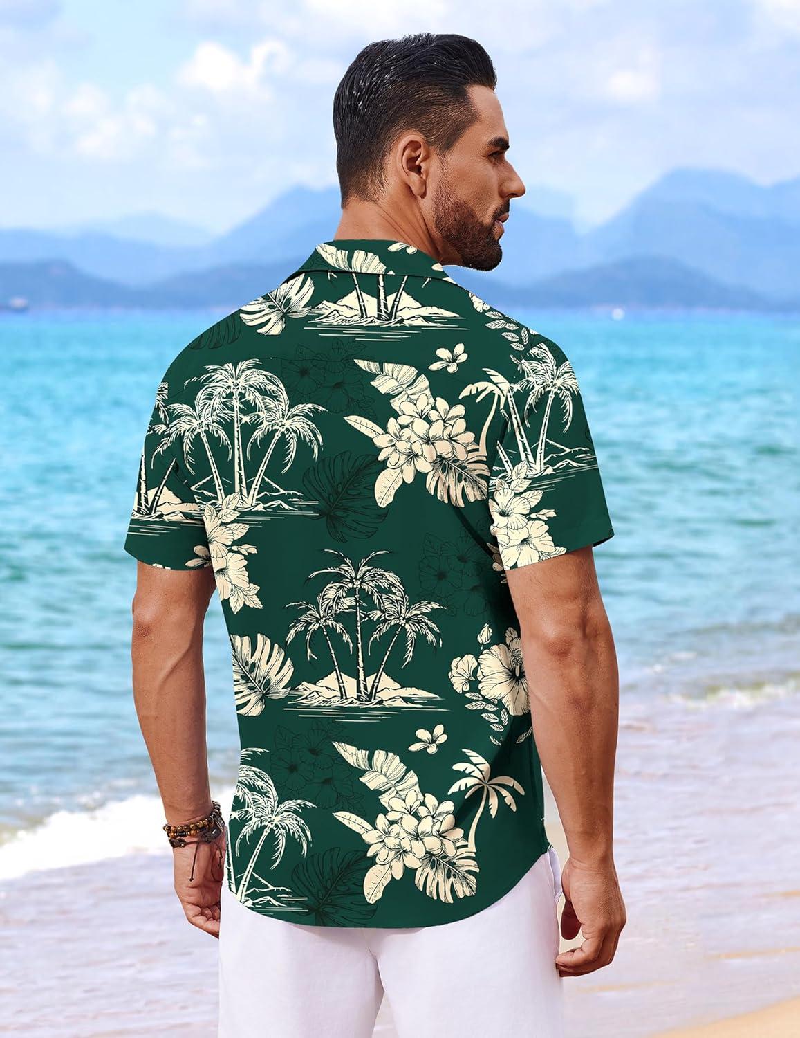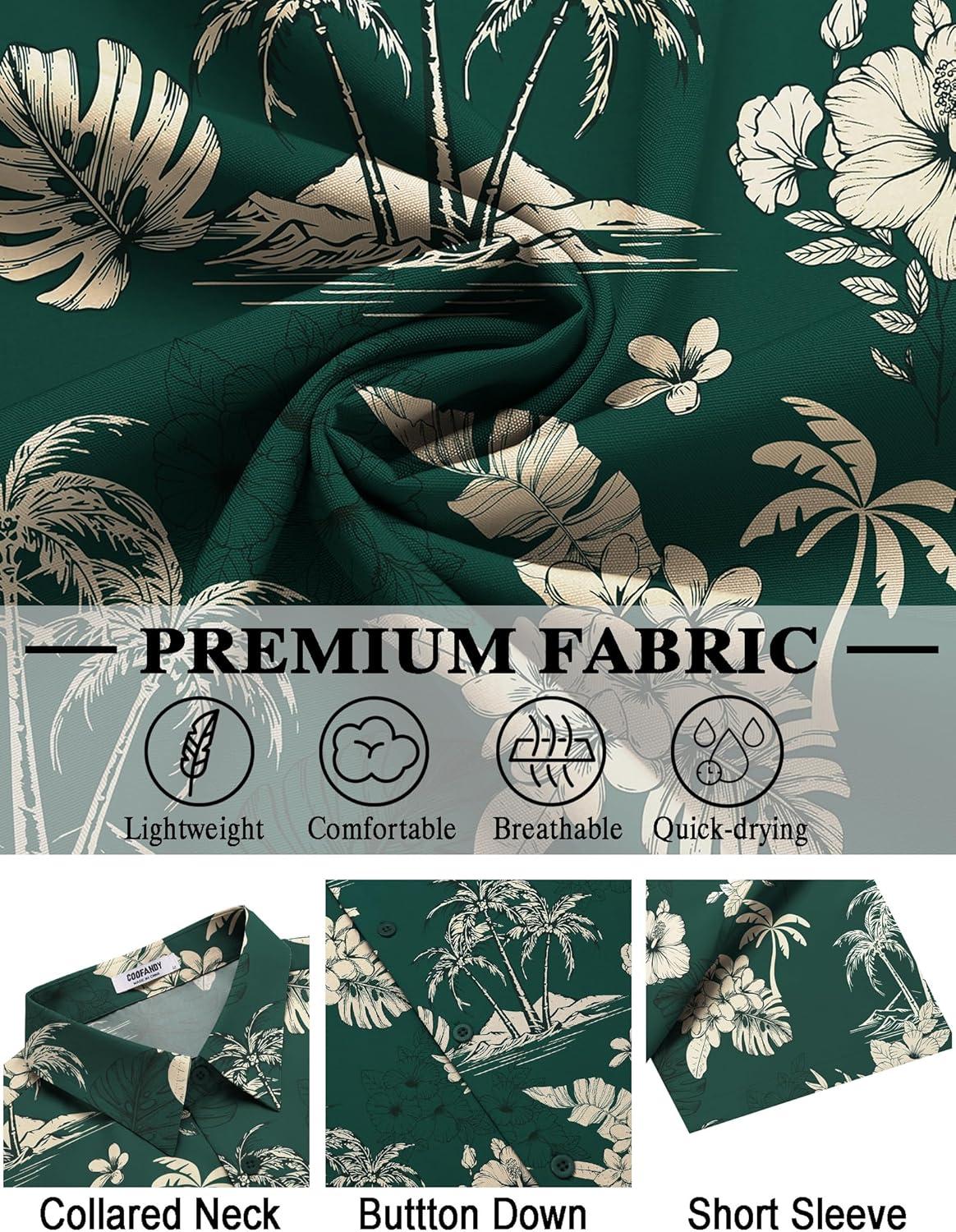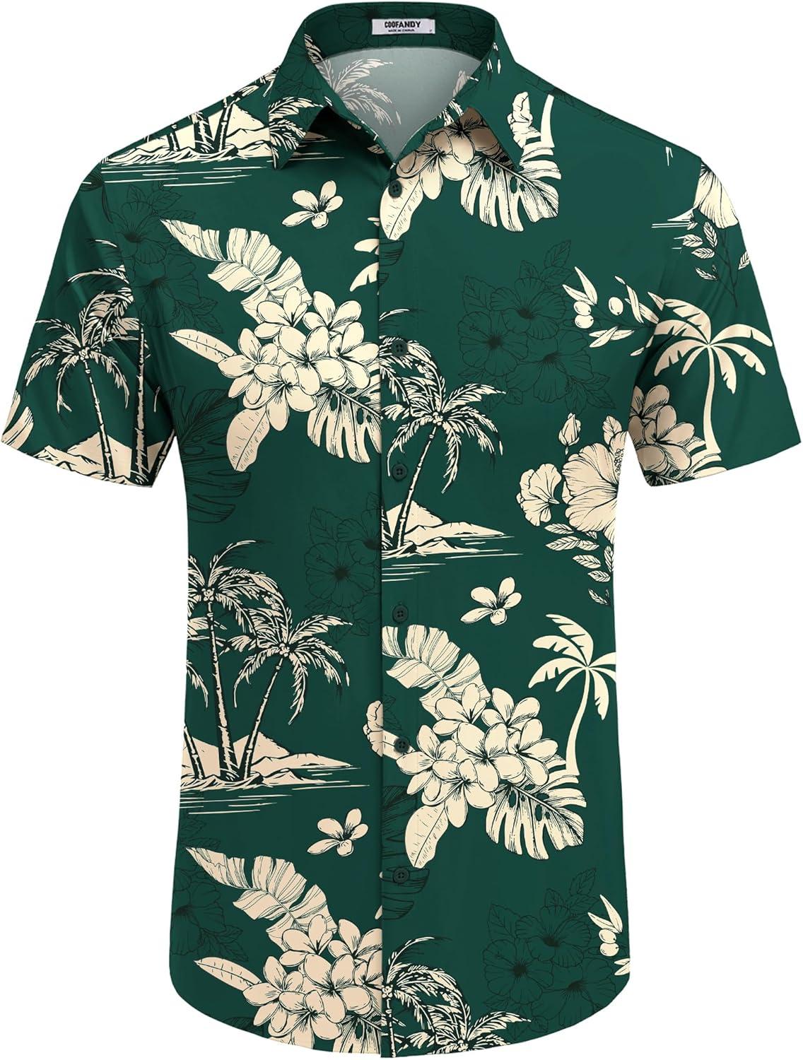 COOFANDY Mens Hawaiian Shirt Short Sleeve Button Down Shirts Tropical Floral Summer Beach Shirts(Green – Tropical Style)