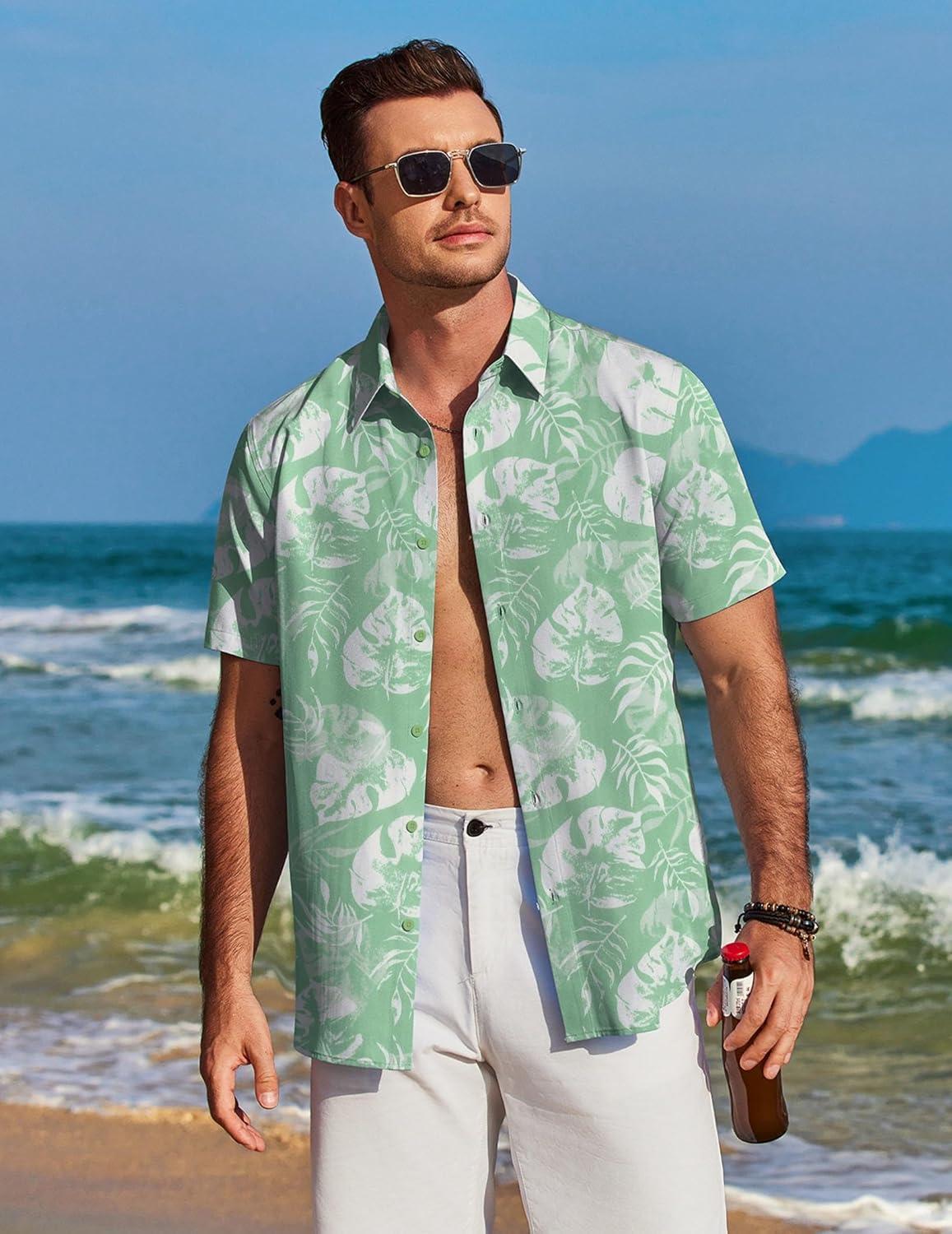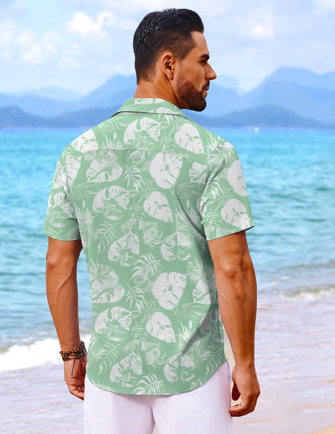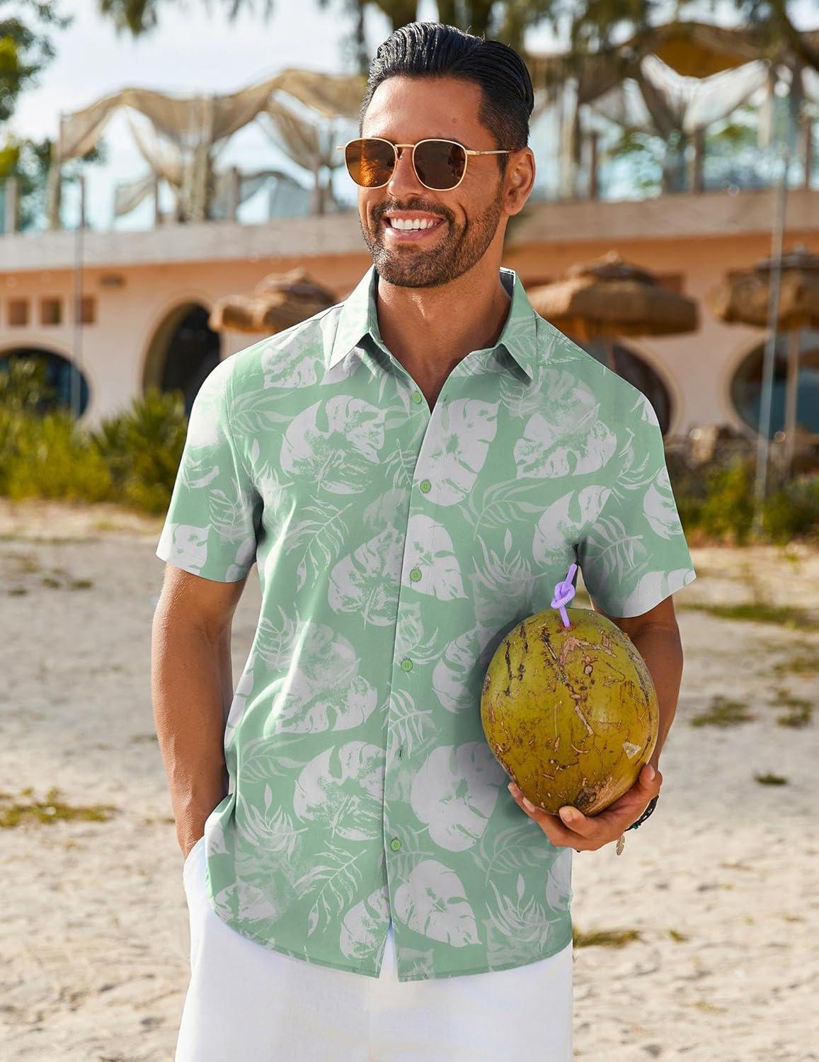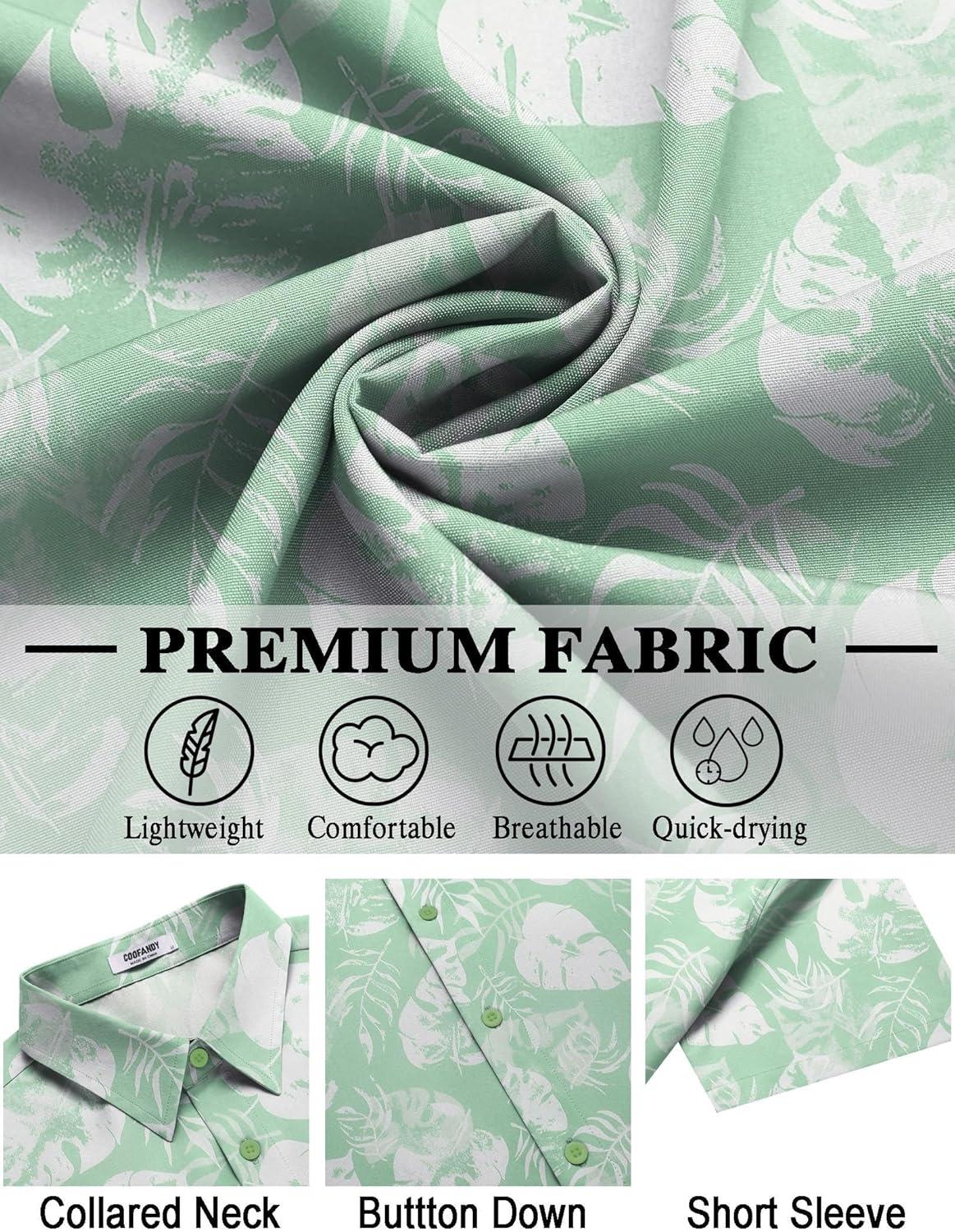 COOFANDY Mens Hawaiian Shirt Short Sleeve Button Down Shirts Tropical Floral Summer Beach Shirts(Light Green – Graffiti Leaf)