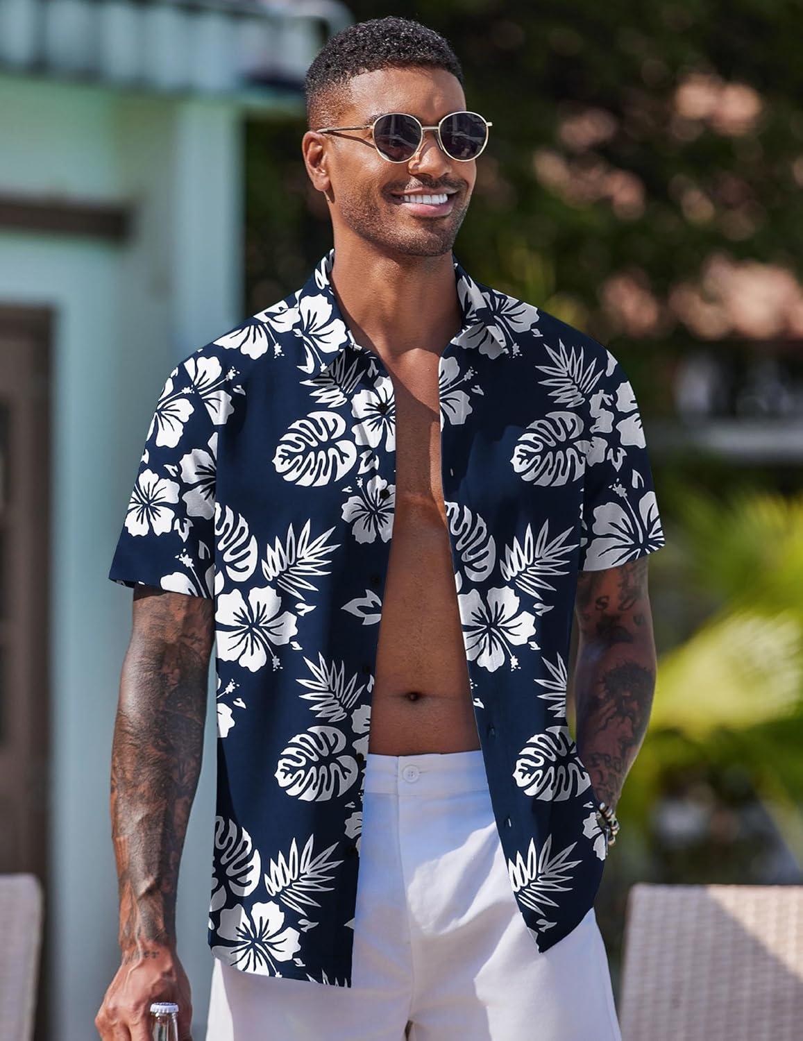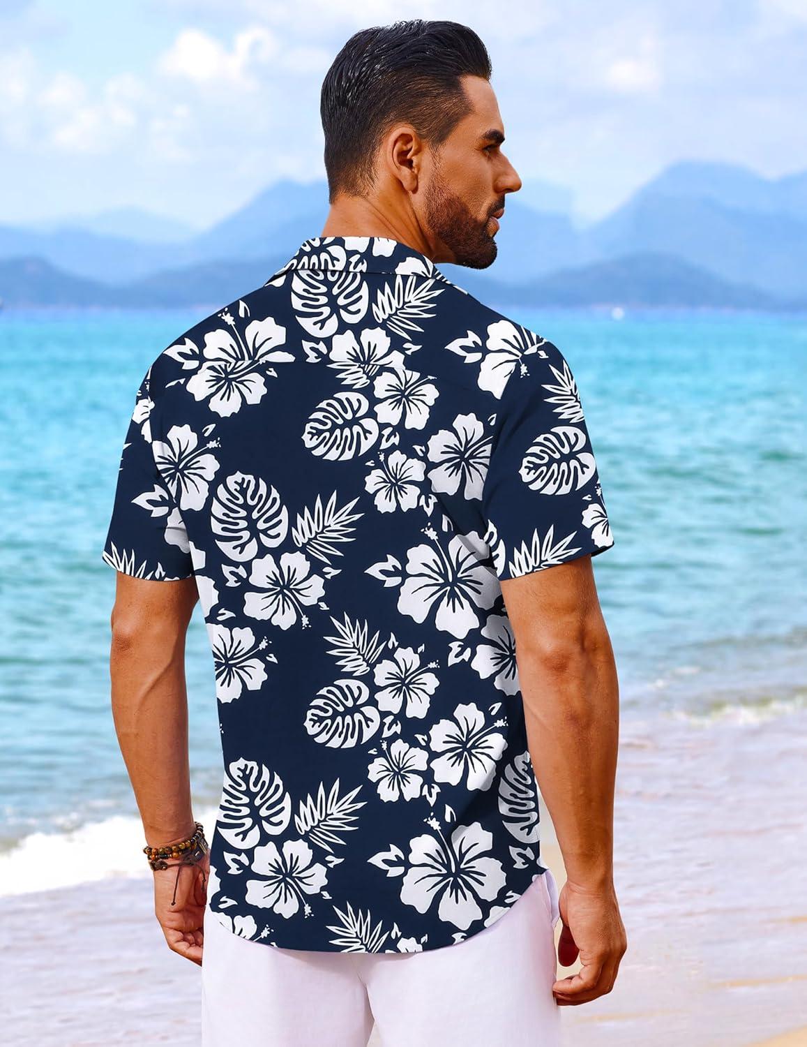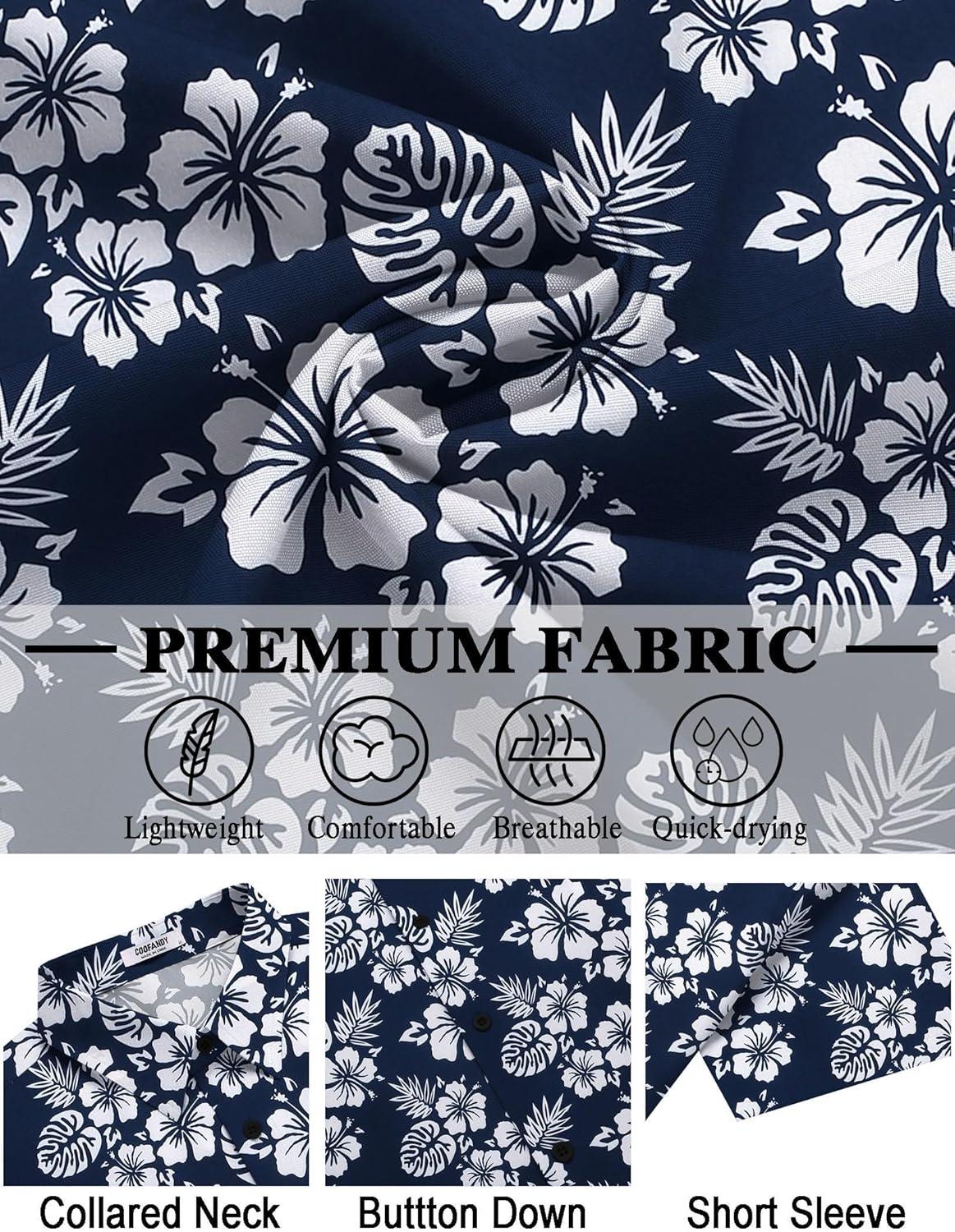 COOFANDY Mens Hawaiian Shirt Short Sleeve Button Down Shirts Tropical Floral Summer Beach Shirts(Navy – Backyard Flowers)