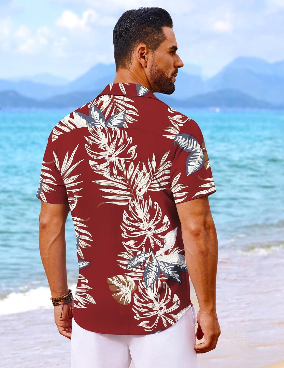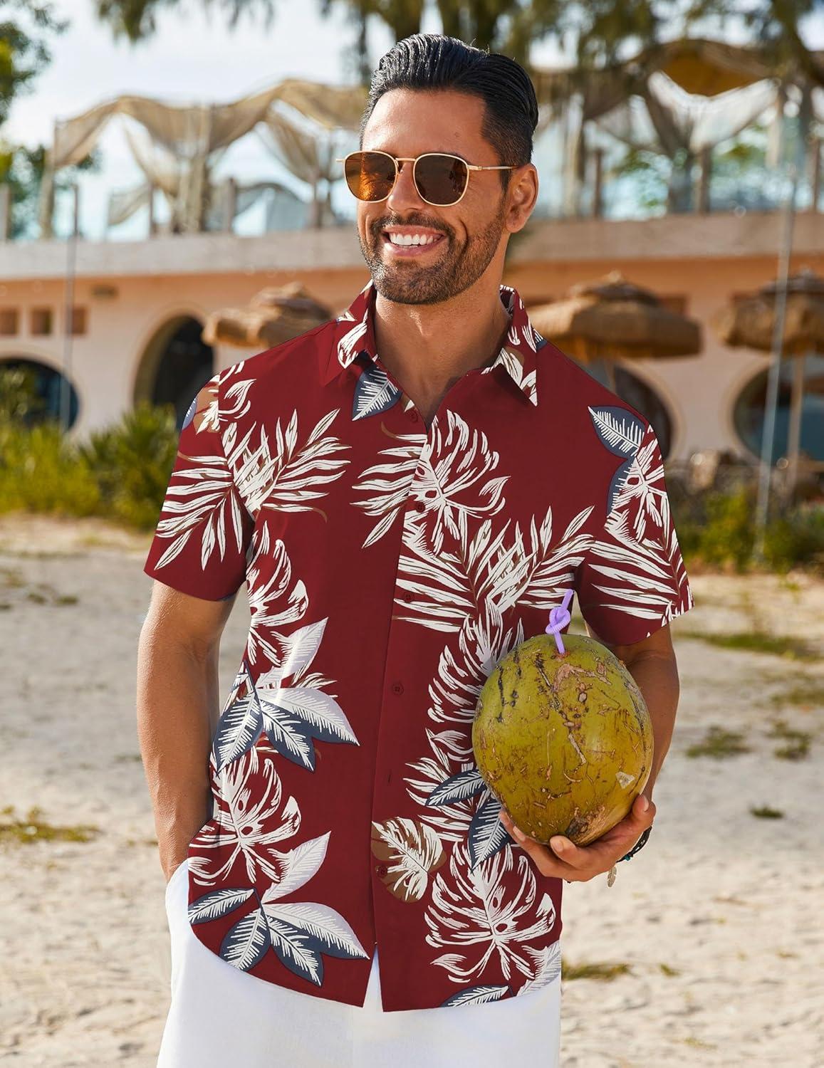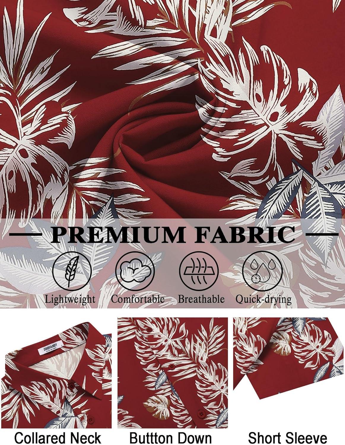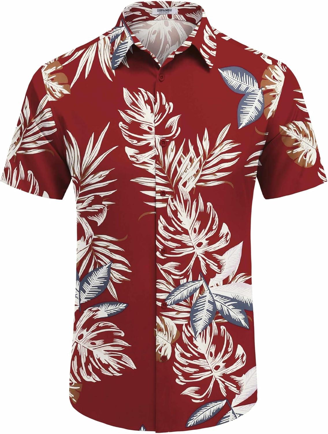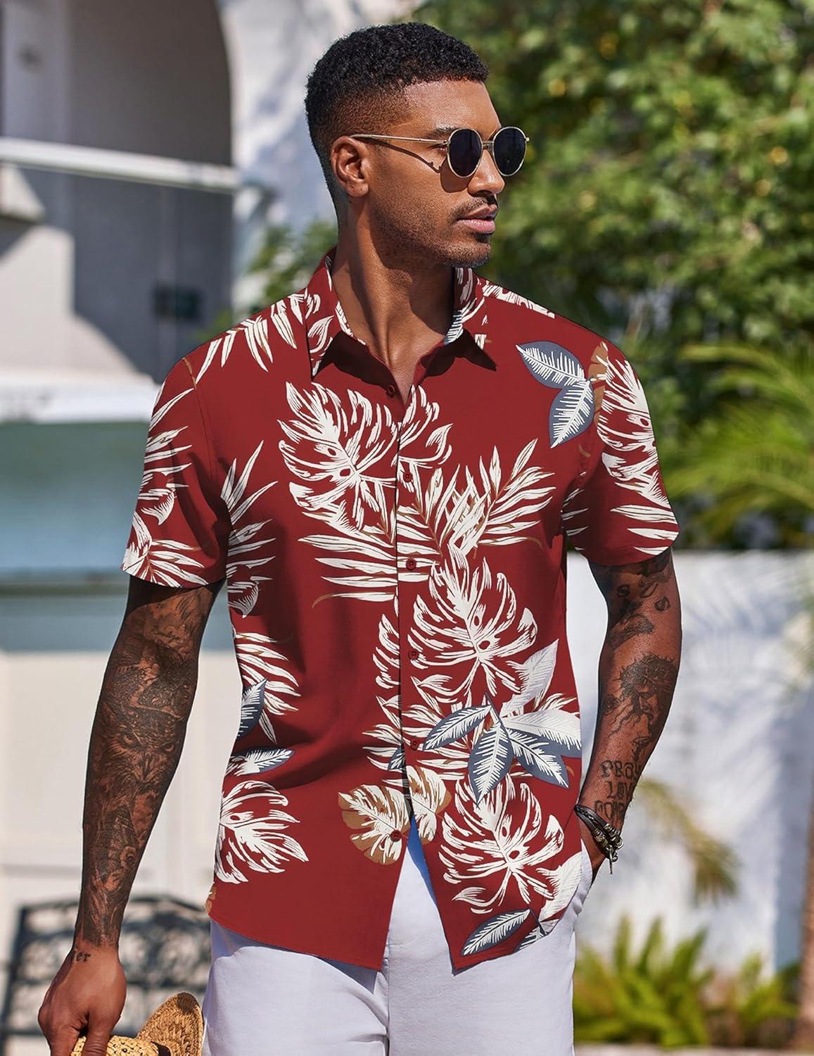COOFANDY Mens Hawaiian Shirt Short Sleeve Button Down Shirts Tropical Floral Summer Beach Shirts(Red – Tropical Leaf)