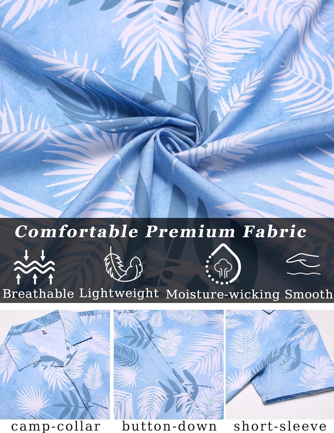 COOFANDY Mens Hawaiian Shirt Short Sleeve Button Down Shirts Tropical Floral Summer Beach Shirts(White Leaves-blue Print)