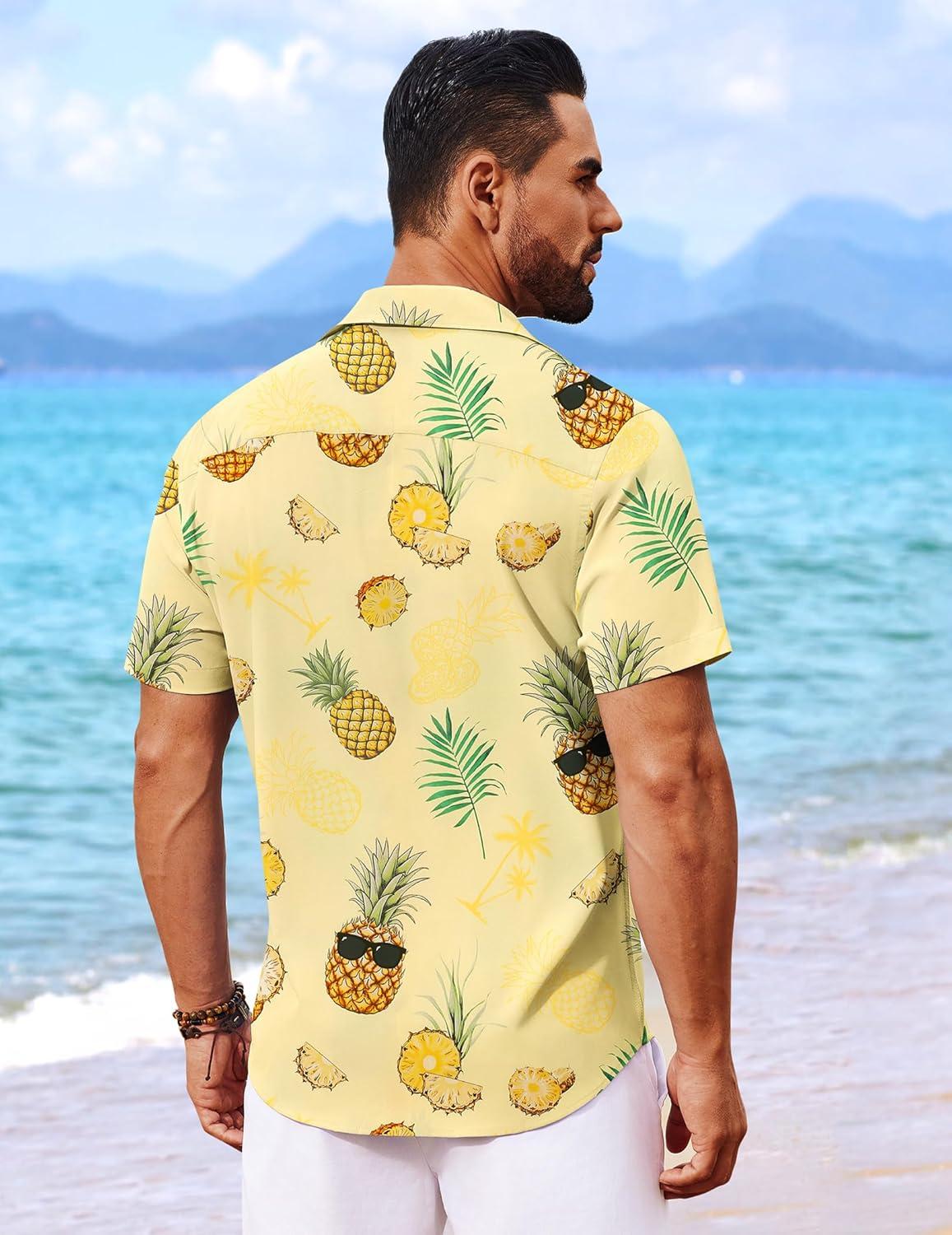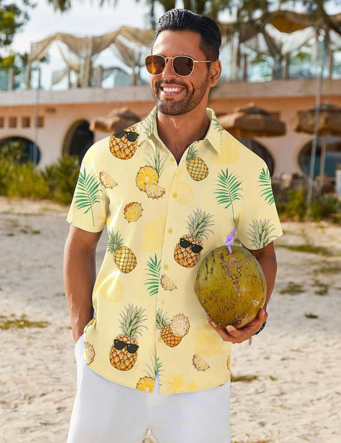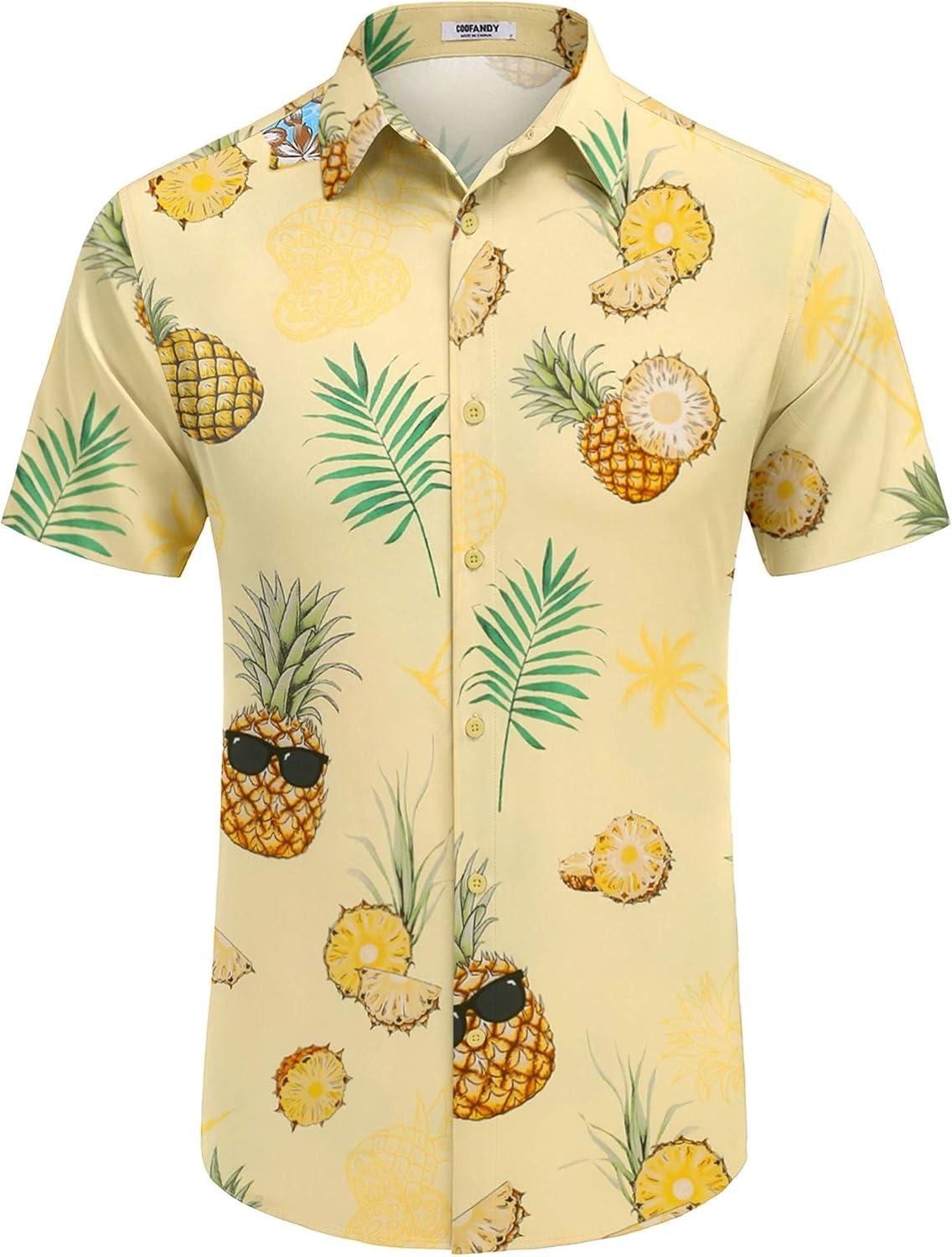 COOFANDY Mens Hawaiian Shirt Short Sleeve Button Down Shirts Tropical Floral Summer Beach Shirts(Yellow – Pineapple)