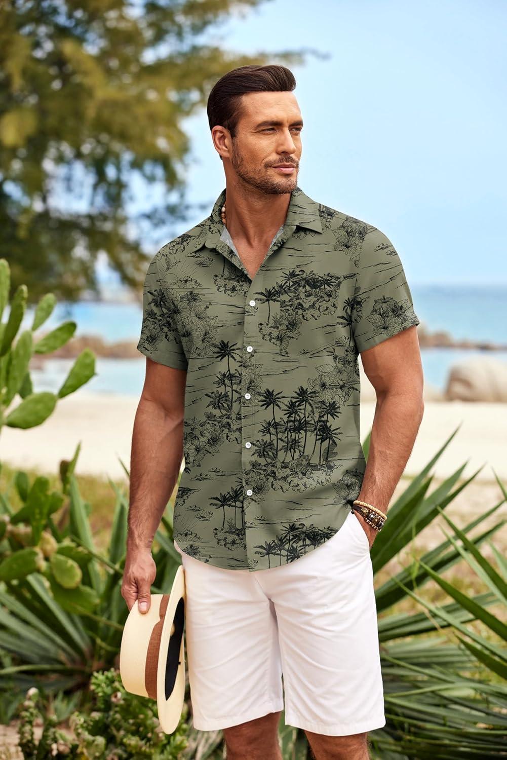 COOFANDY Mens Hawaiian Shirt Short Sleeve Button Down Shirts Tropical Summer Beach Shirts Casual Floral Aloha Shirts(Black Tree-green)