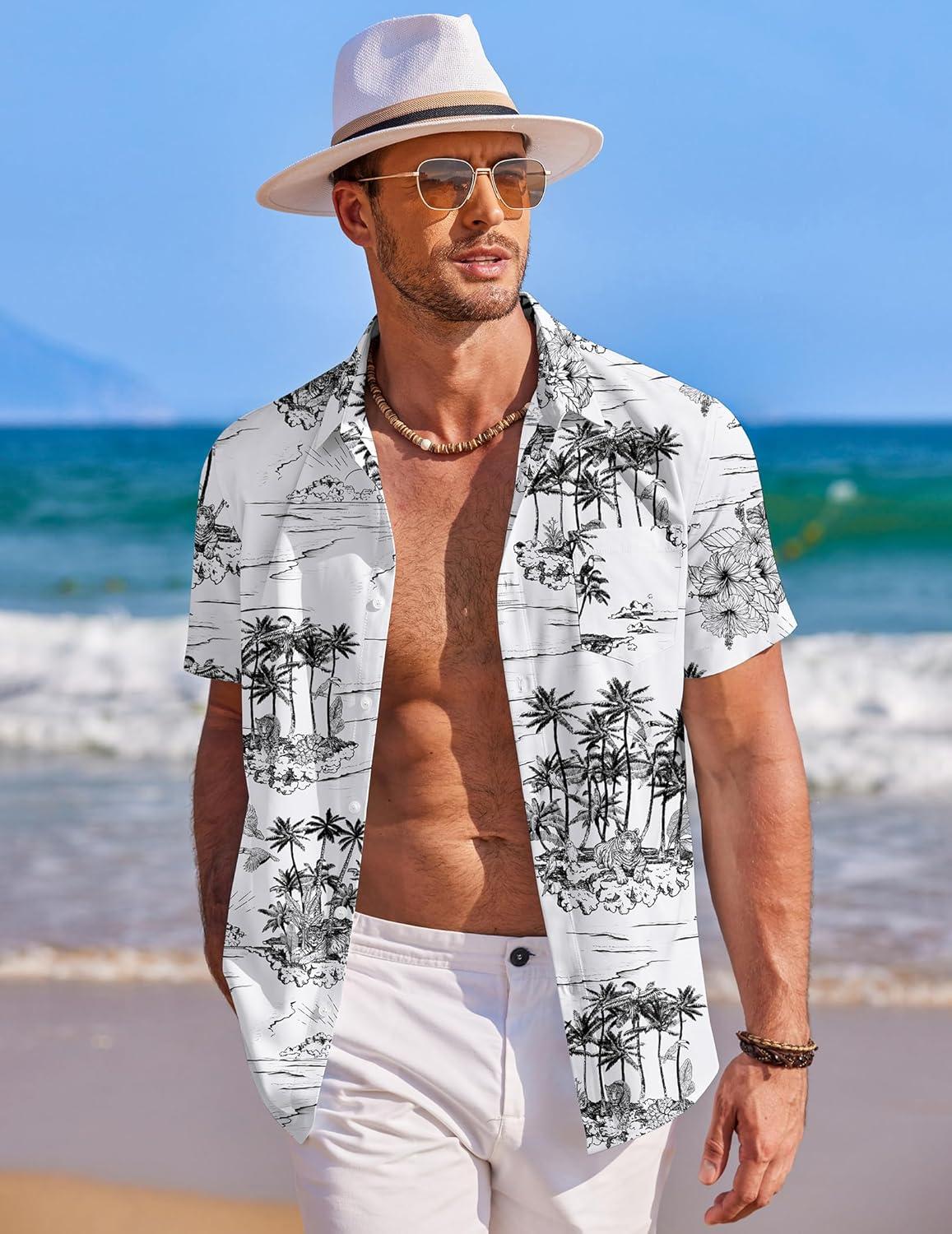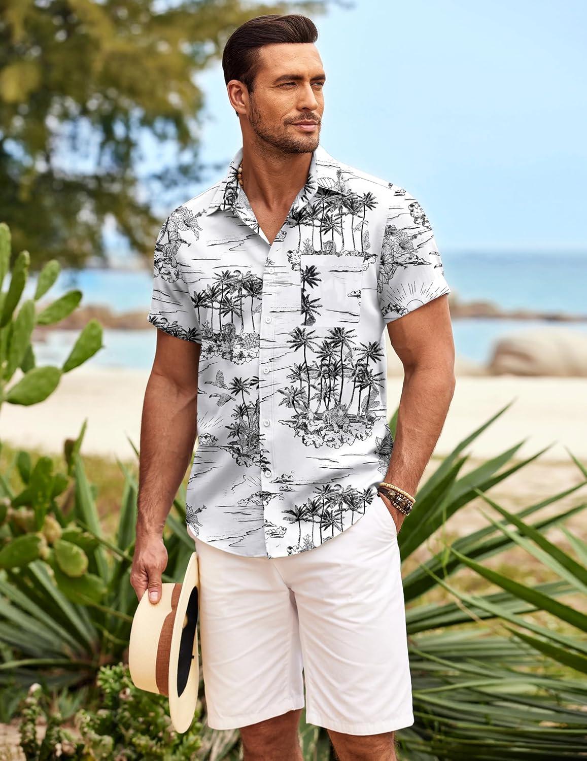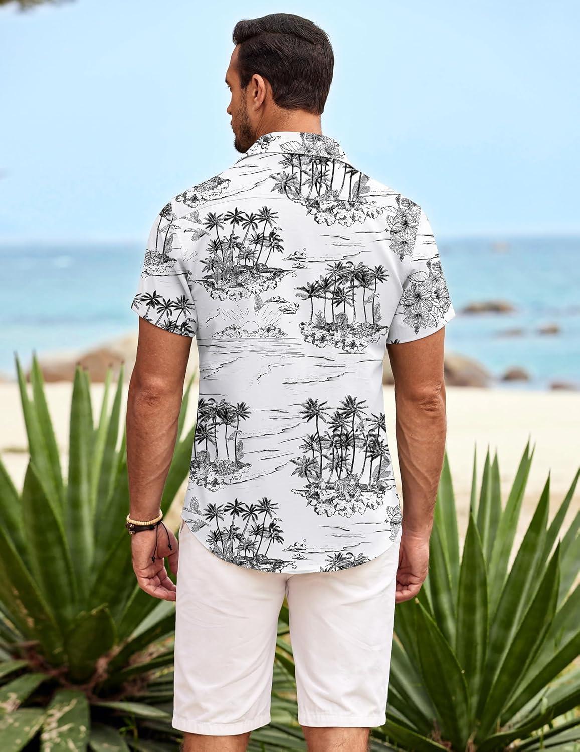 COOFANDY Mens Hawaiian Shirt Short Sleeve Button Down Shirts Tropical Summer Beach Shirts Casual Floral Aloha Shirts(Black Tree-white)