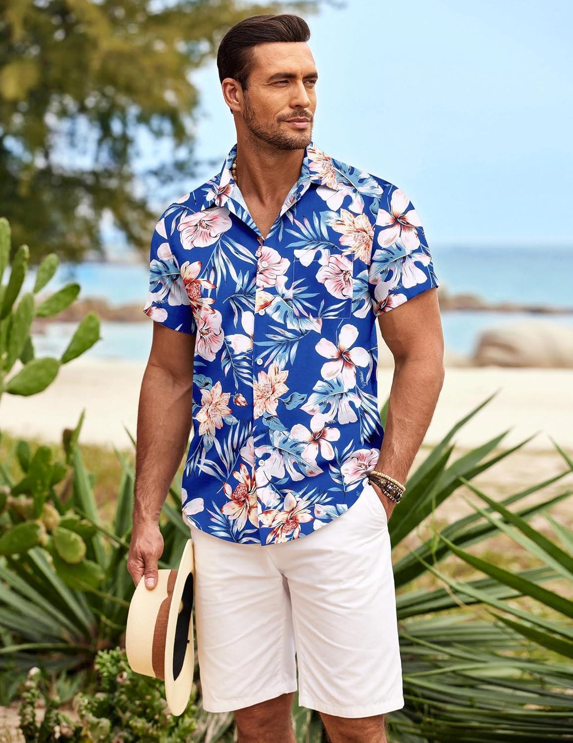 COOFANDY Mens Hawaiian Shirt Short Sleeve Button Down Shirts Tropical Summer Beach Shirts Casual Floral Aloha Shirts(Blue Floral)