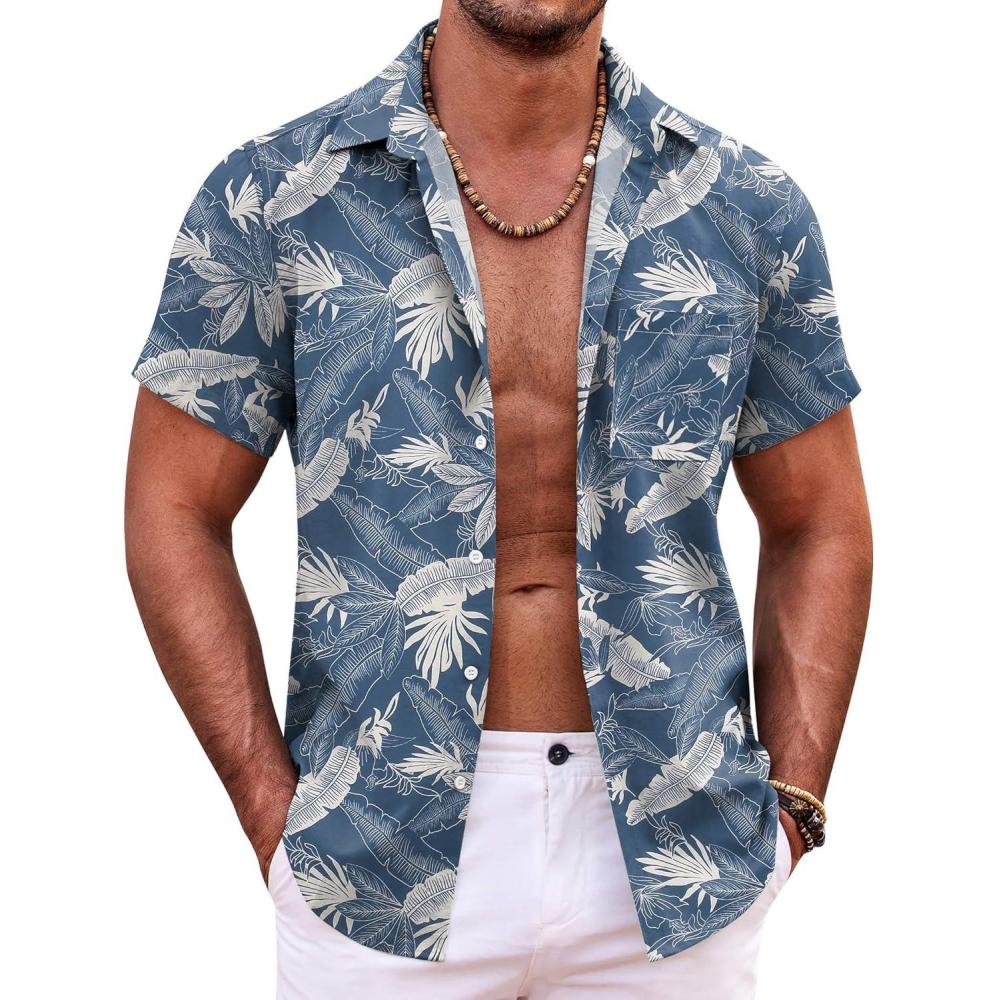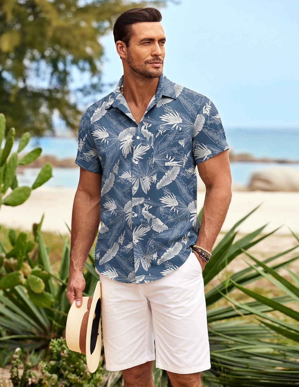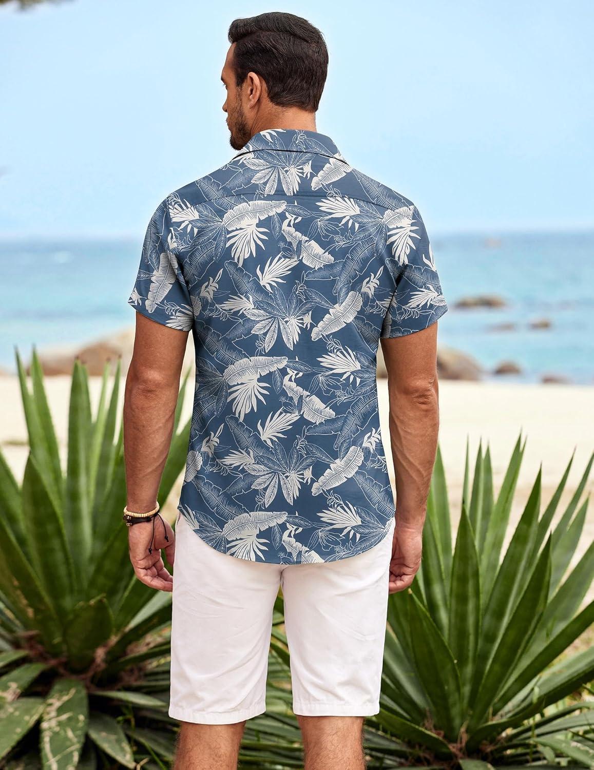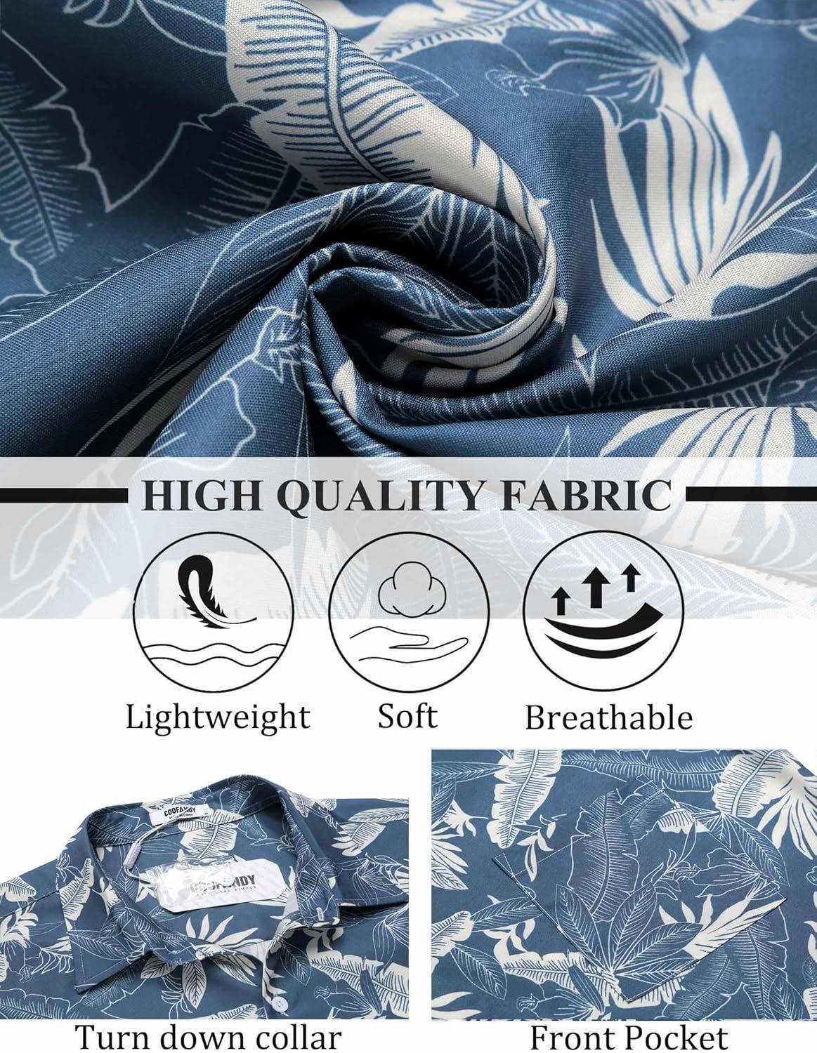 COOFANDY Mens Hawaiian Shirt Short Sleeve Button Down Shirts Tropical Summer Beach Shirts Casual Floral Aloha Shirts(Blue Leaves)