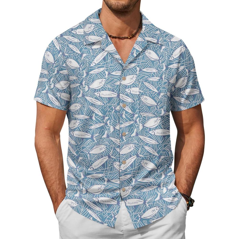 COOFANDY Mens Hawaiian Shirt Short Sleeve Buttoon Down Shirts Casual Tropical Floral Summer Linen Shirts(Blue Shark)