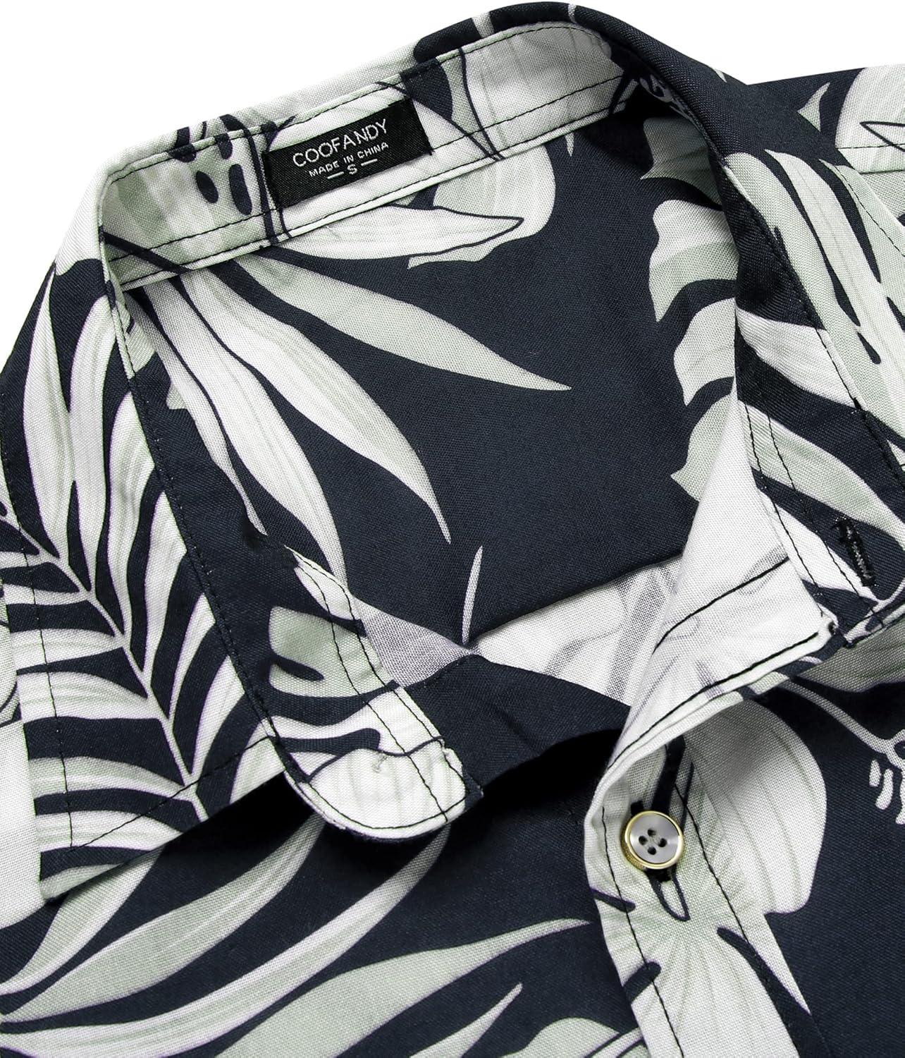 COOFANDY Men’s Hawaiian Shirt Short Sleeve Casual Button Down Tropical Summer Beach Aloha Shirts(Black / White Leaf)