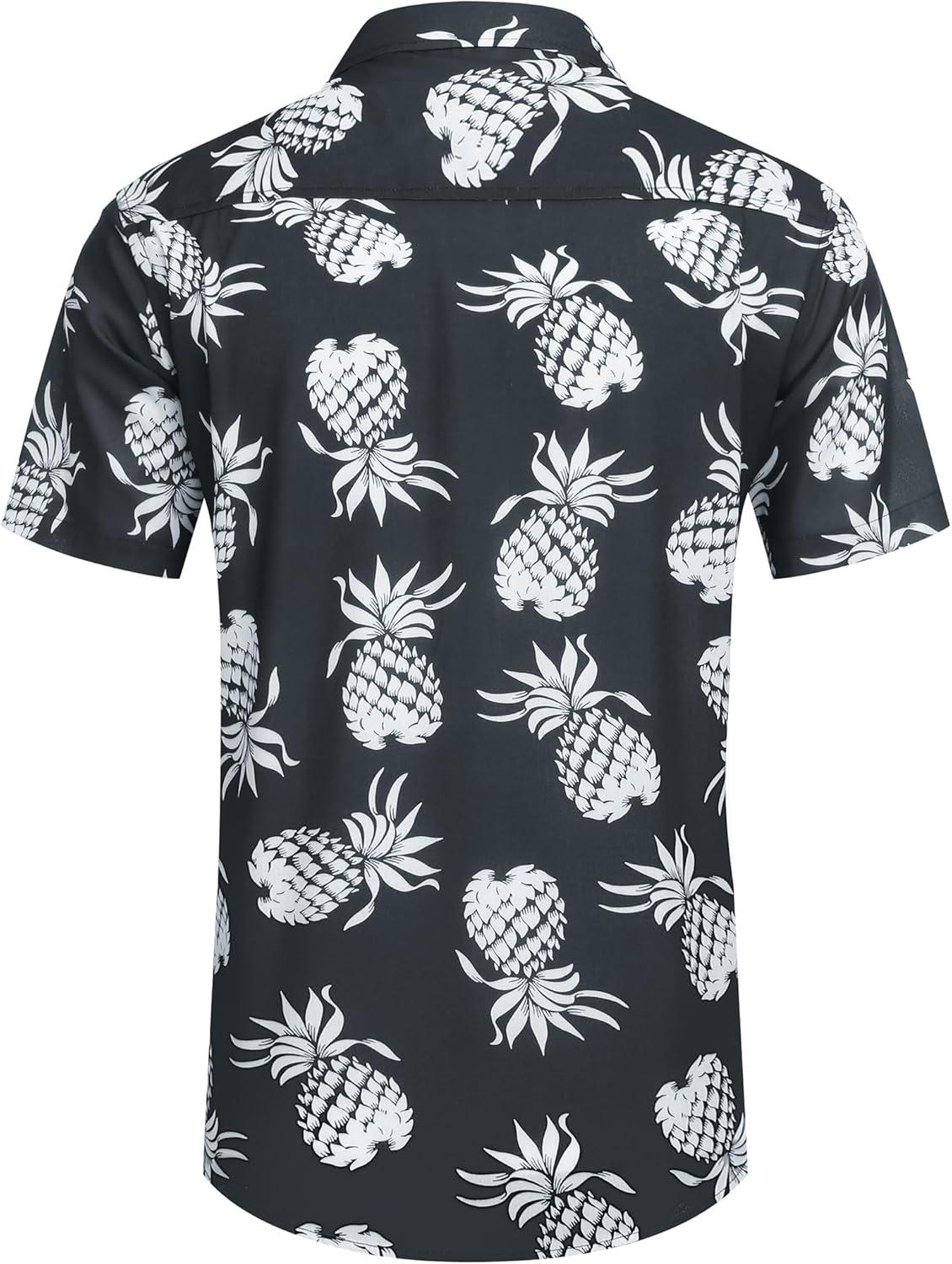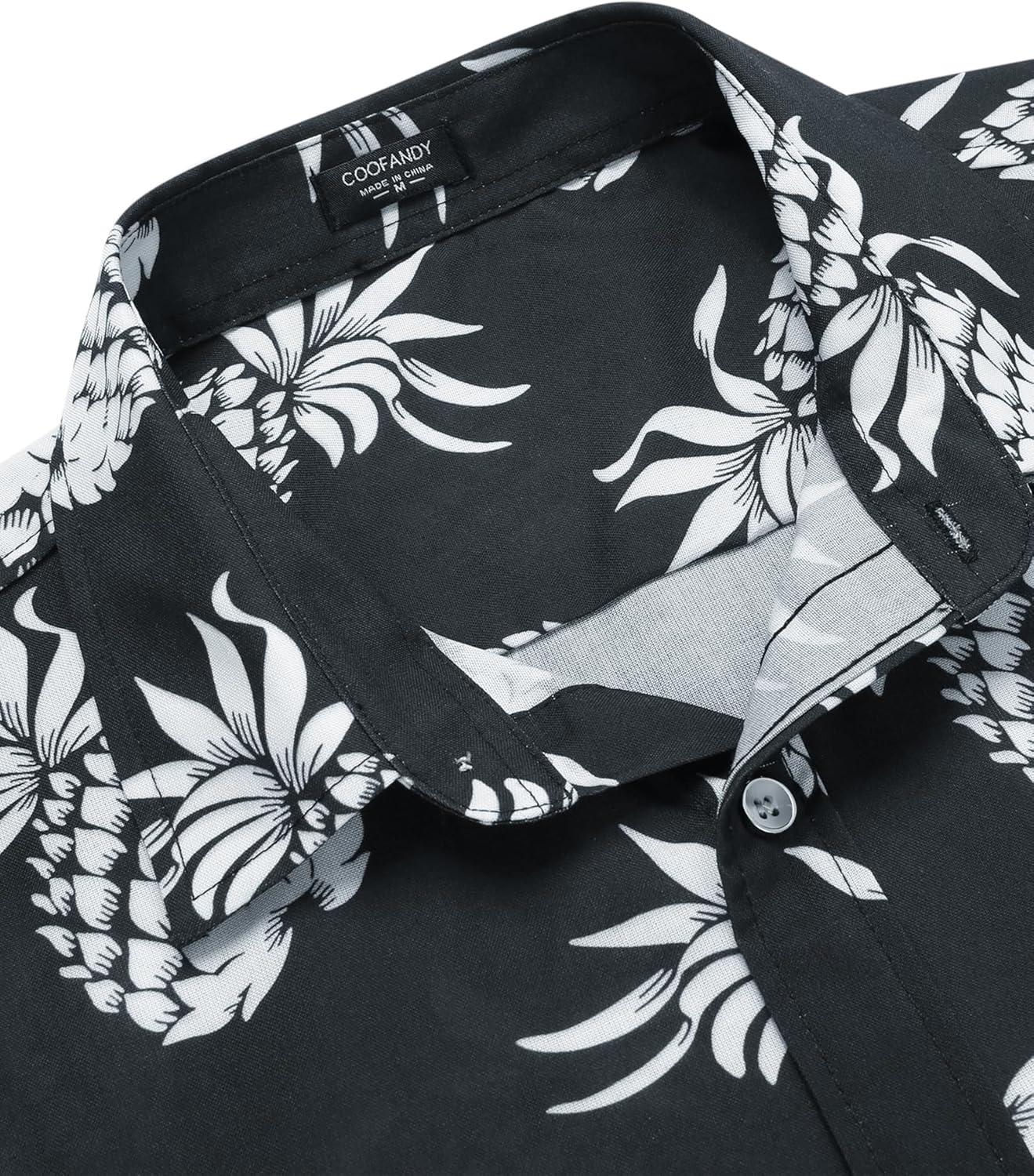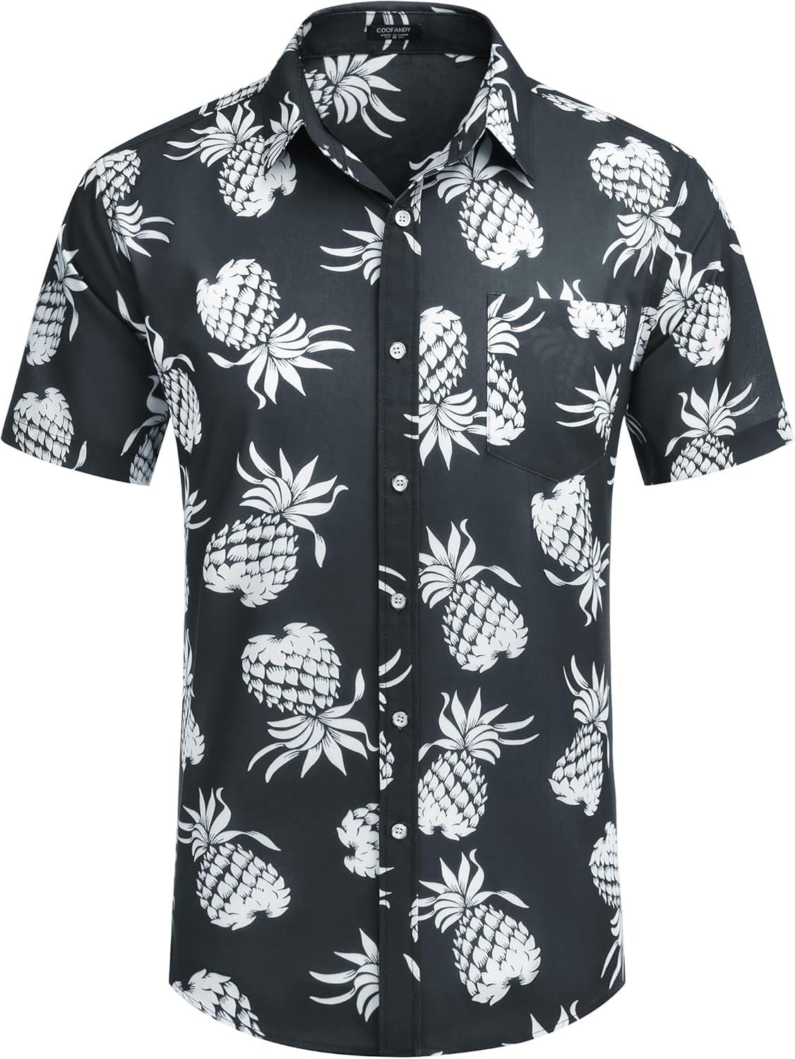 COOFANDY Men’s Hawaiian Shirt Short Sleeve Casual Button Down Tropical Summer Beach Aloha Shirts(Black / White Pineapple)
